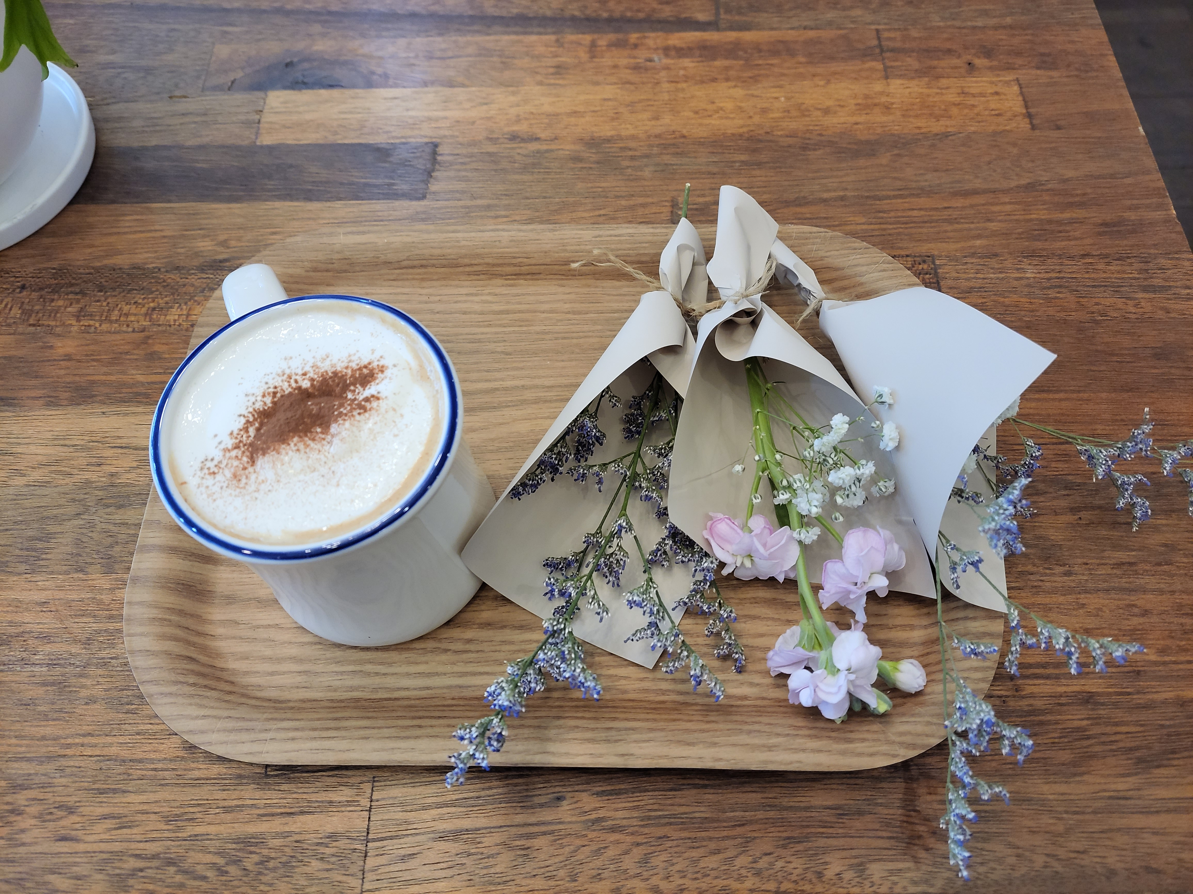 커피, 차를 주문했더니 이렇게 꽃을 선물 주셨습니다^^
