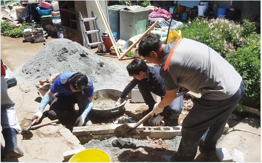 수곡면 창촌리의 한 저소득 가정을 찾아 50대 가장이 90세 노모, 지적장애인 딸과 함께 사는 집은 어려운 형편에 오랫동안 수리하지 못한 듯 안팎이 모두 허름한 주거환경을 말끔히 개선해 주었습니다.
