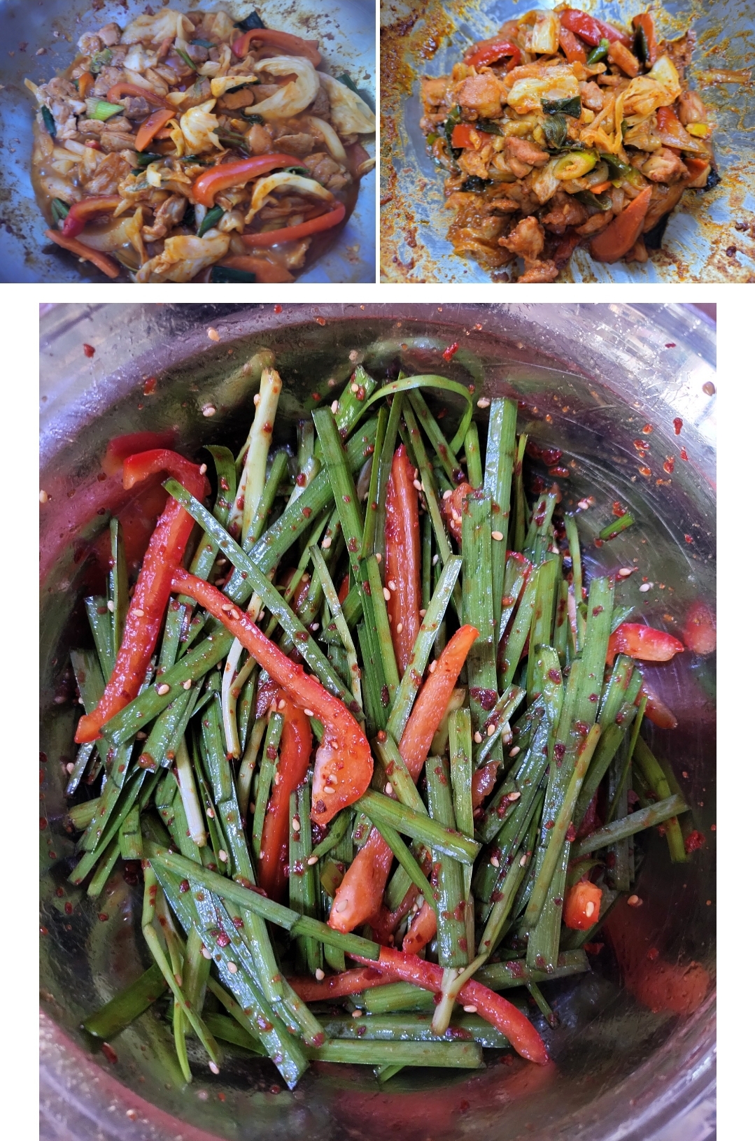 여름에 여러반찬 잘 안해 먹어서~ 야채넣고 볶아만 준 닭갈비에 부추겉절이로 뚝딱!