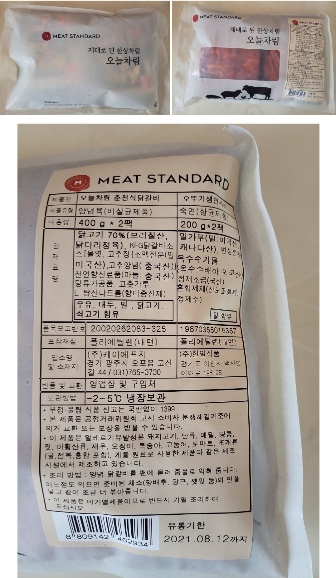 쿠팡에서 주문한 오늘차림 춘천닭갈비~