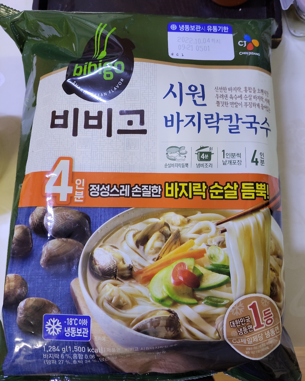 냉동제품이라 면도 생면이고 4분내지 5분만 끓이면 맛있는 바지락 칼국수가 완성된다.