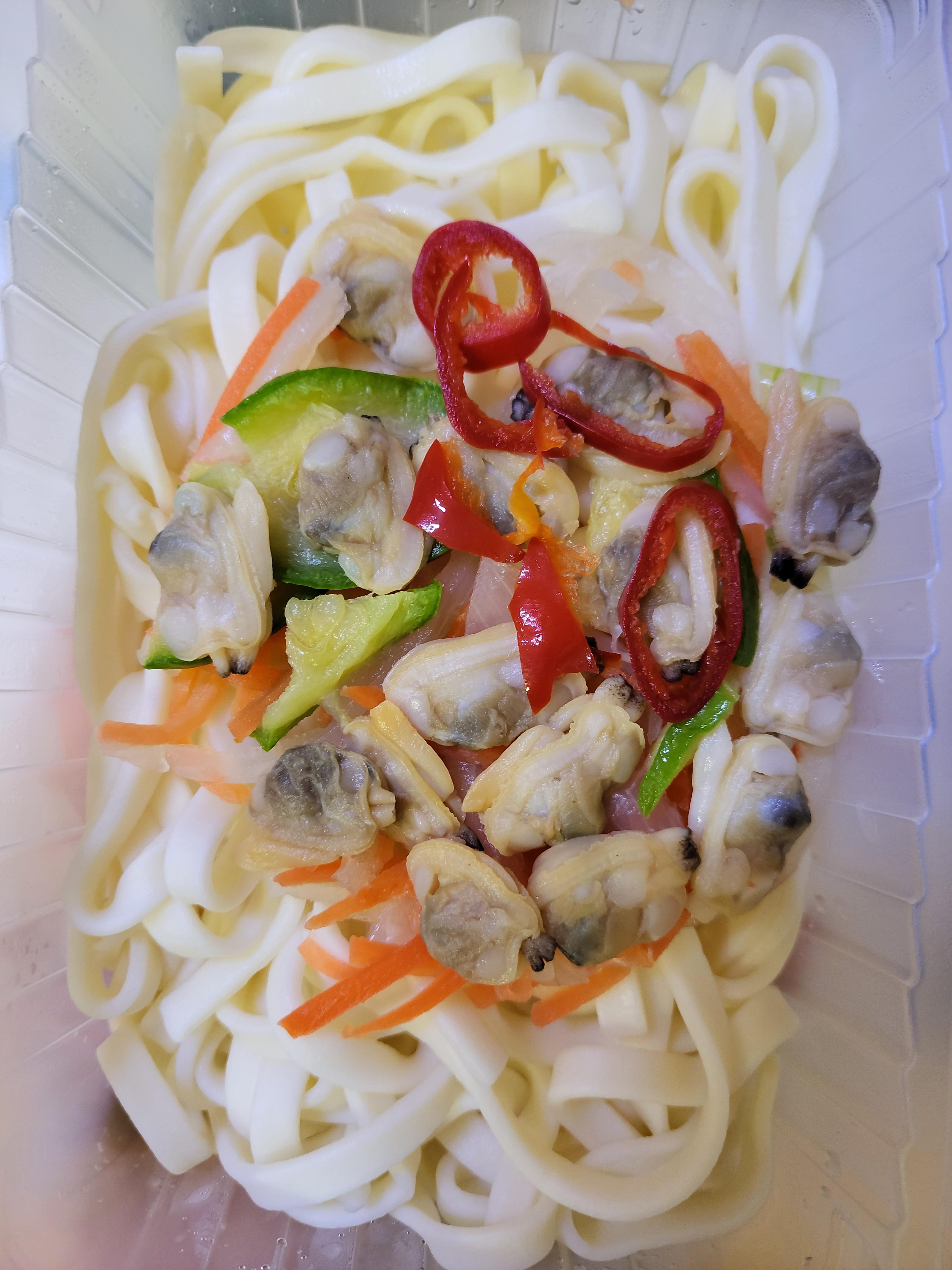 1인분씩 생면이랑 바지락 야채등이 밀봉되어 있다~