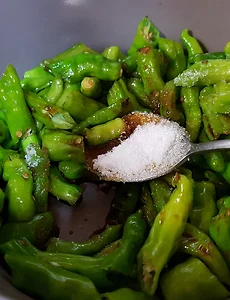 오늘반찬1 오늘 반찬, 매콤한 꽈리고추 소고기조림~ 오늘 반찬 매콤한 꽈리고추 소고기조림. 재료및양념~ 꽈리고추 한봉지. 불고기용 소고기 한줌. 간장4,조선간장0.5,설탕1.5, 다진마늘1,생수약간 꽈리고추 씻어 절반혹은 3등분으로 자르기. 간장4,조선간장0.5,설탕1.5,다진마늘1 넣고 생수조금 추가하고 바글바글 끓여요. 불고기용 소고기를 먹기좋게 썰어 꽈리고추조림에 넣어줍니다. 소고기는 불고기용이라 뒤적뒤적 볶아주면 금방 익어요. 금새 완성된 매콤한 꽈리고추 소고기조림. 매콤 짭짤달큰한 꽈리고추 소고기조림 입맛 돋구는 반찬이네요. 2017. 10. 20. 이전 1 다음