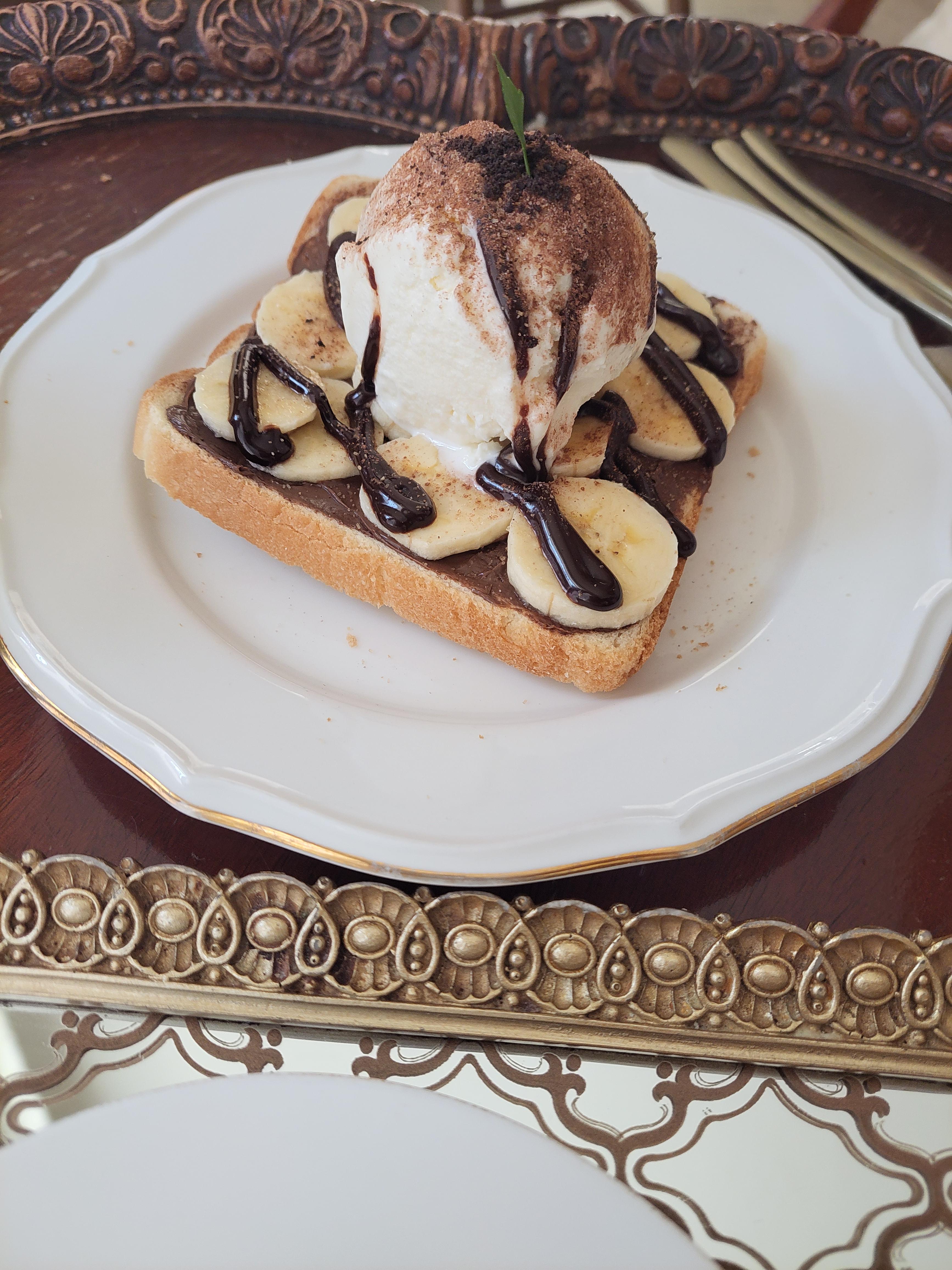 누텔라초코크림을 바른 토스트에 아이스크림이 올라가 있네요~
