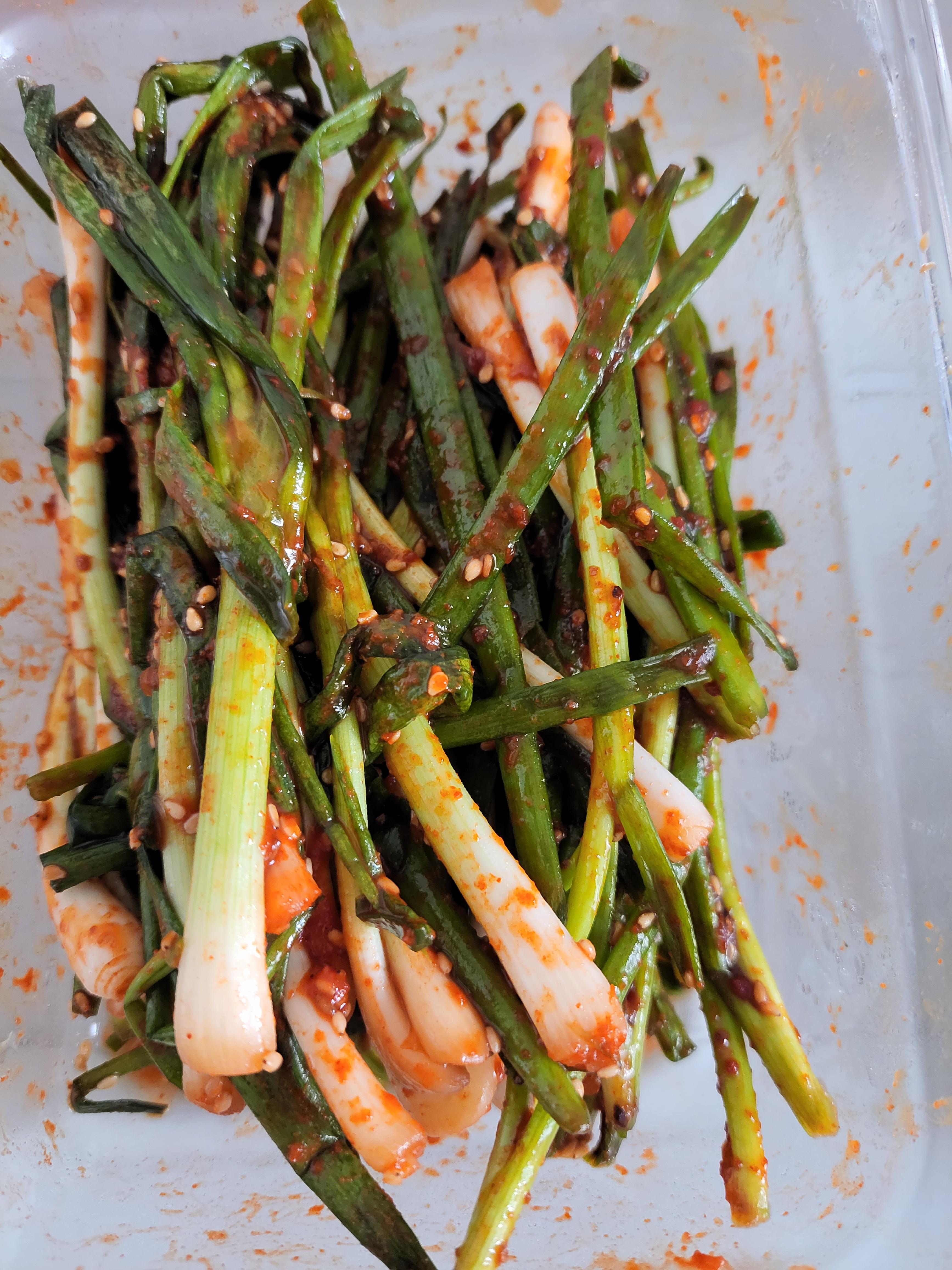 첫 번 해먹고 두 번째 남은것으로 버무린 쪽파김치.