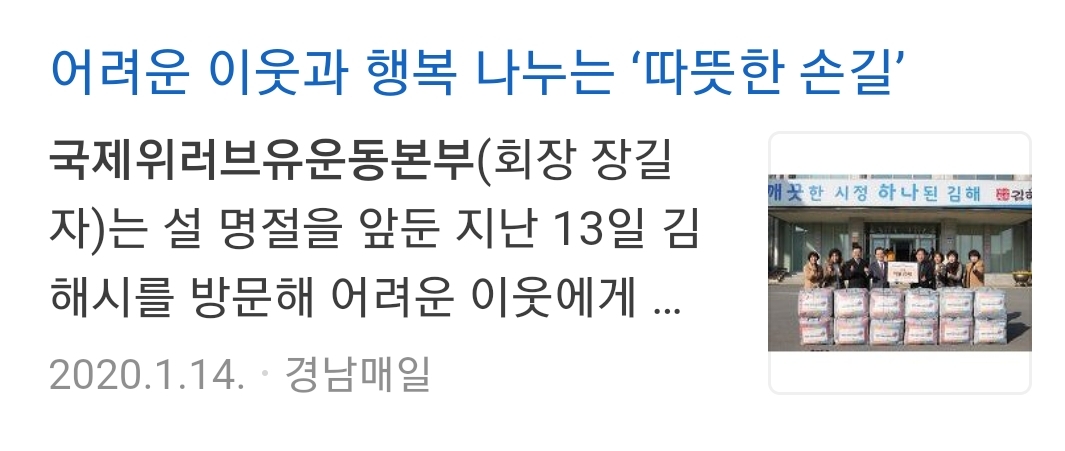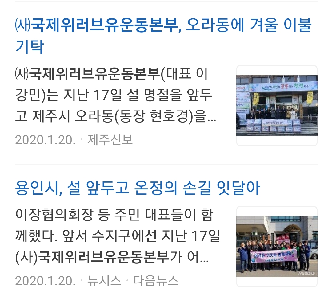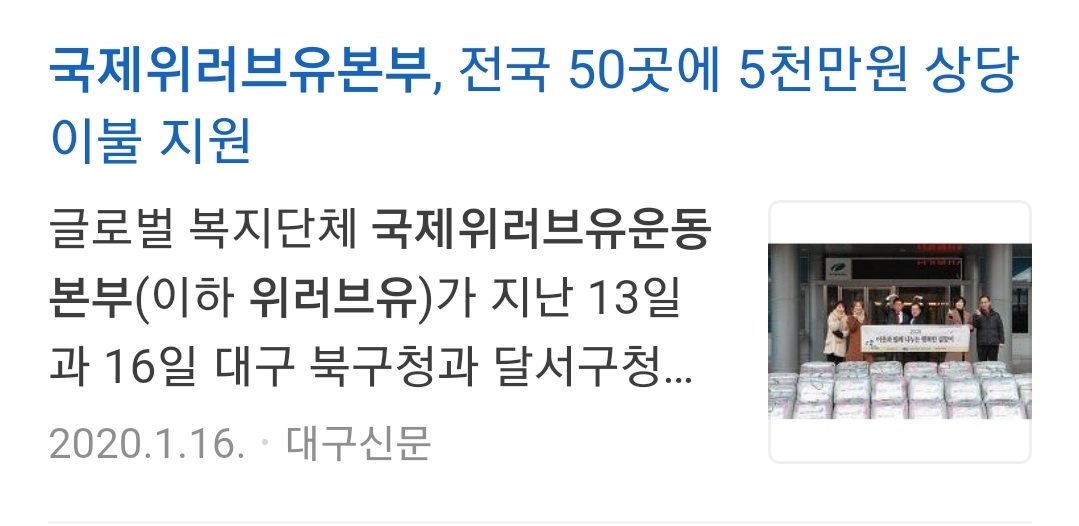 2020년 새해에도 국제위러브유 장길자회장님 이하 위러브유 회원들의 나눔은 이어졌고 또 앞으로도 다양하게 복지활동을 이어나갈 것입니다.