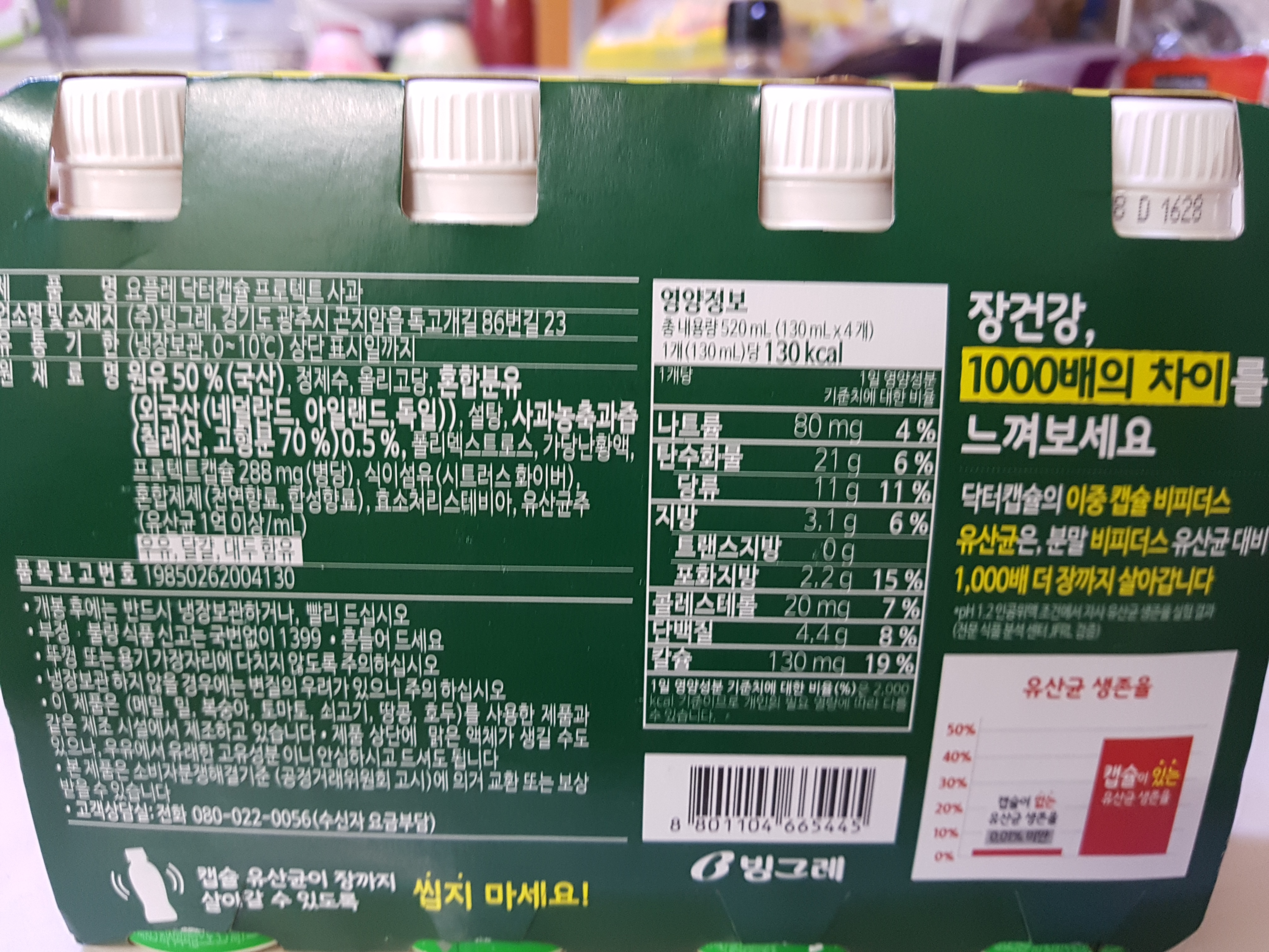 비피더스 유산균이 이중 캡슐로 되어 살아서 장까지 간다는 빙그레 요플레 닥터캡슐!