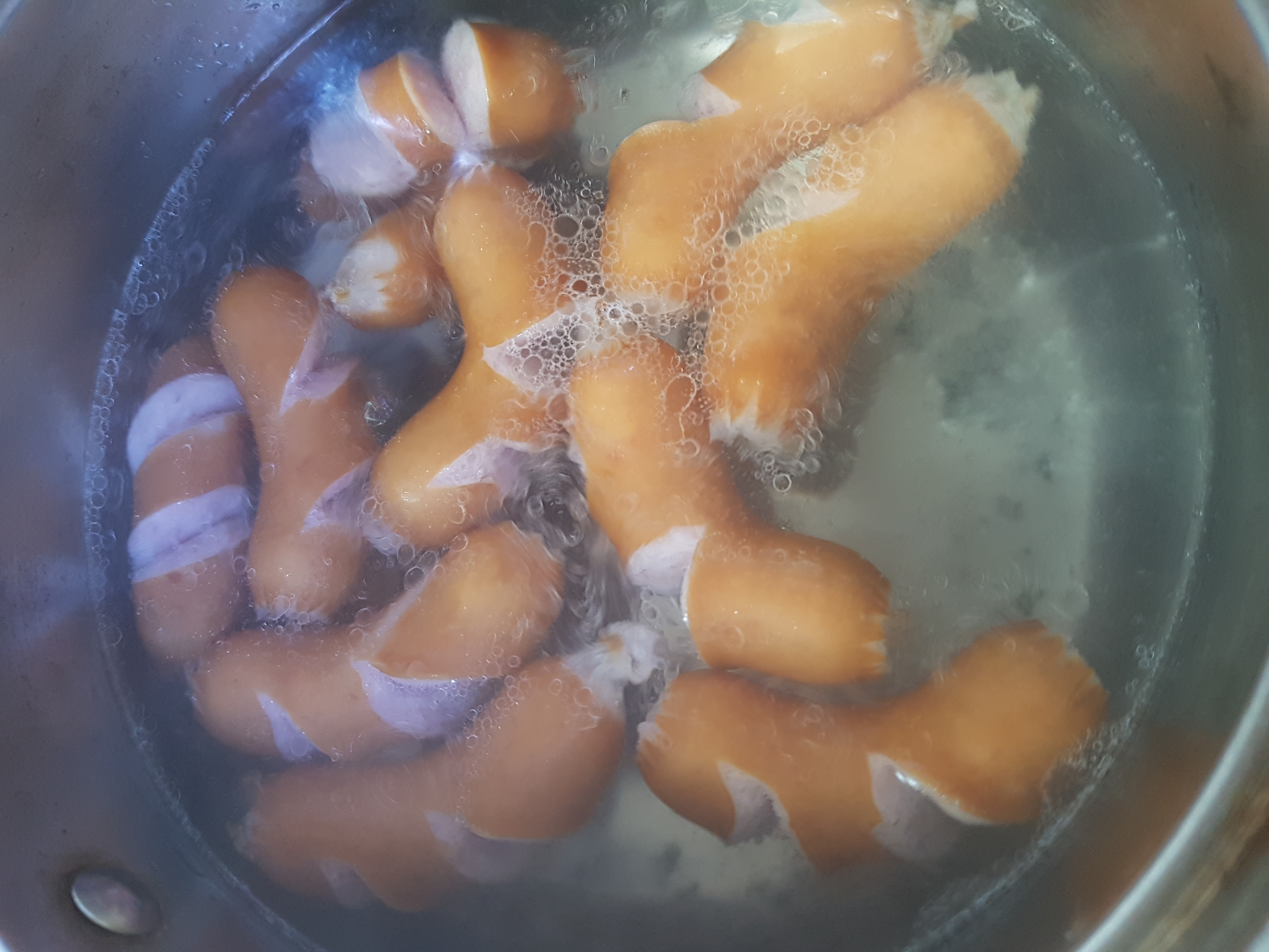 삶은 소세지 케찹 뿌려 먹을 준비!!