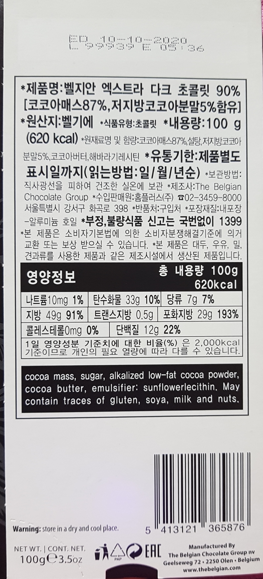 벨지안 엑스트라 다크 초콜릿 뒷면도 찍어보고요~