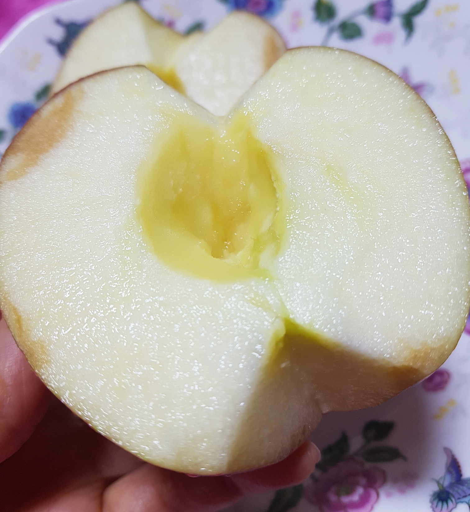 사과 2~3알씩 일회용 비닐장갑(손목긴)에 넣어 냉장고에 보관했는데 확실히 오래 신선하게 보관하기에 괜찮은 방법이네요.