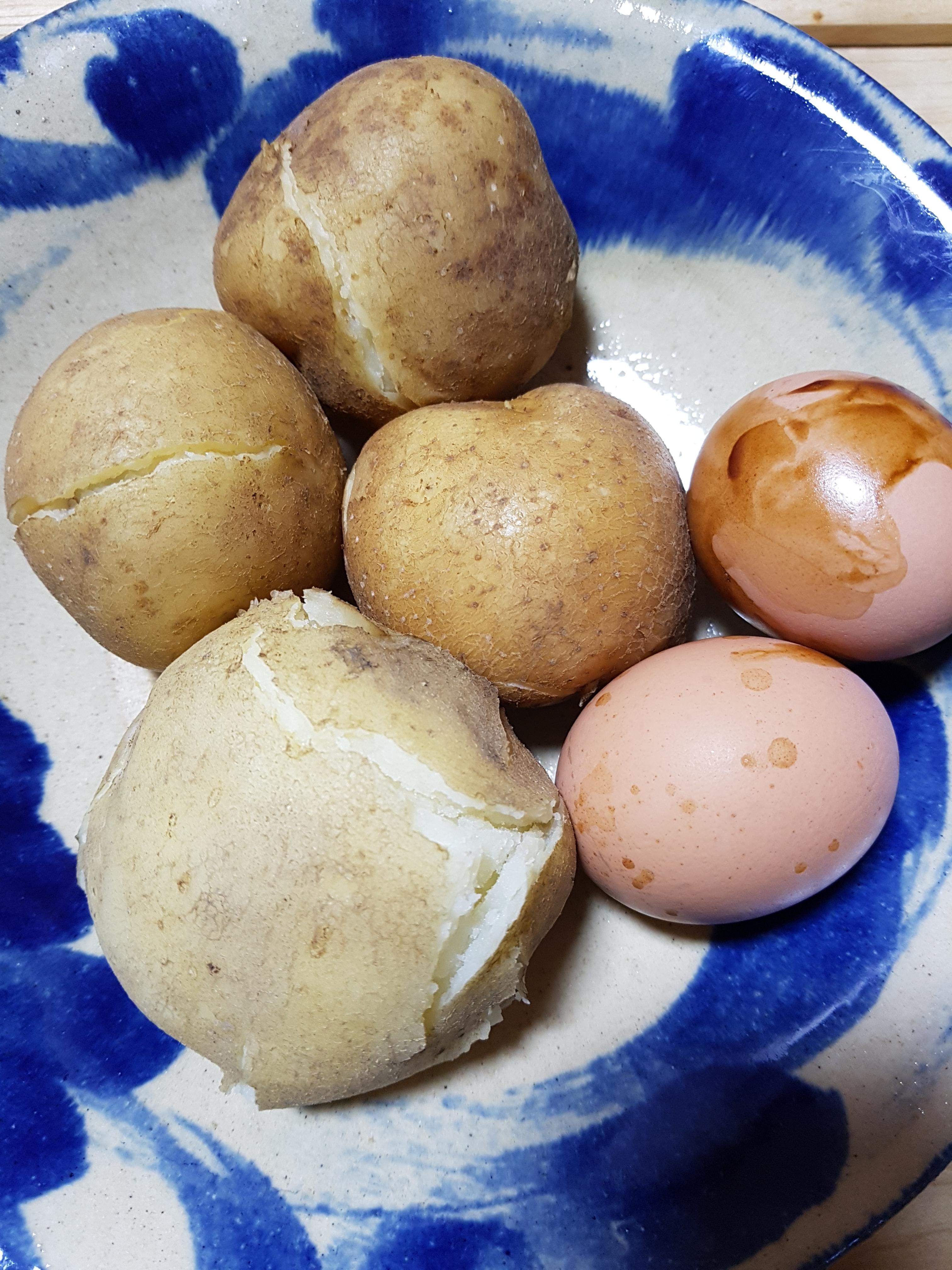 밤에 야식으로 전기압력솥으로 찐 감자랑 계란 맛나게 먹었네요.