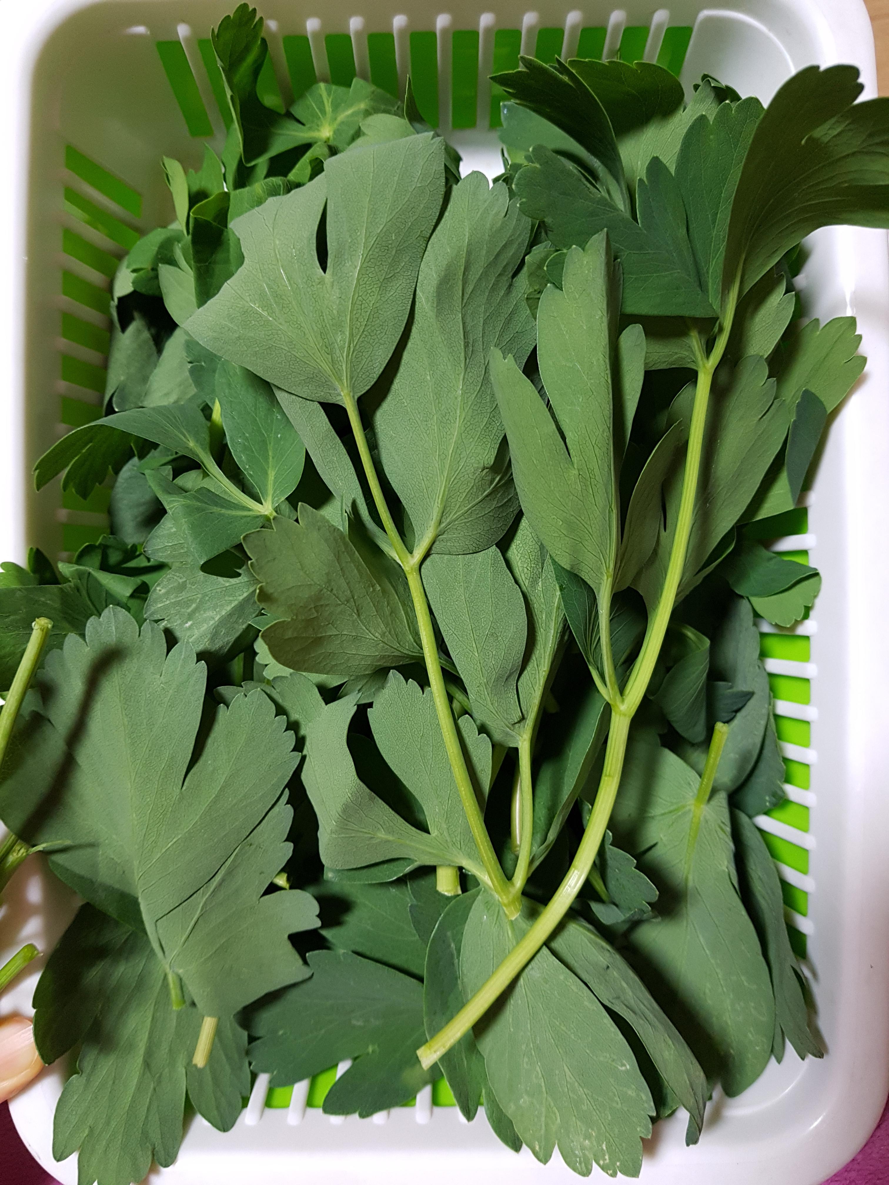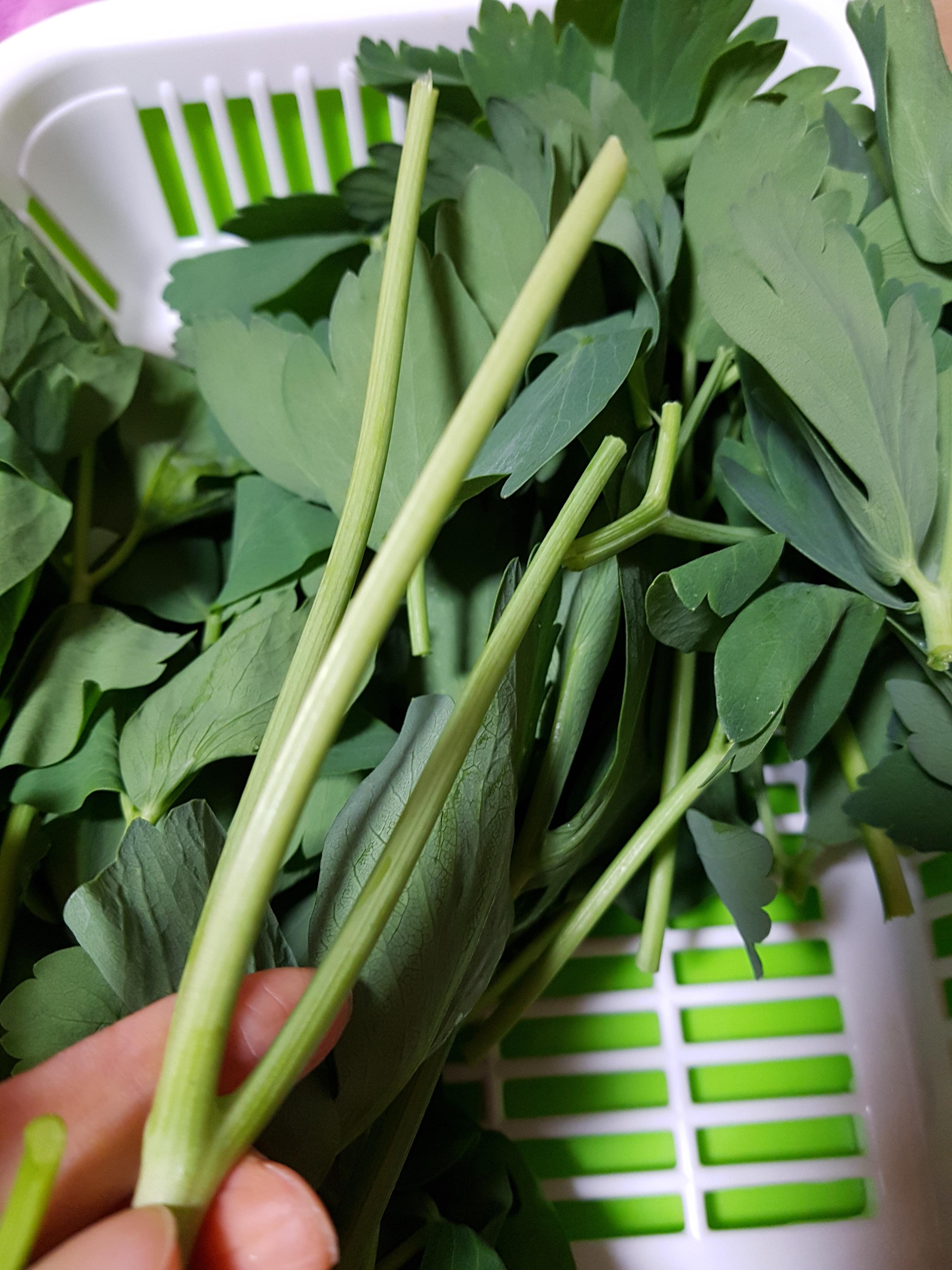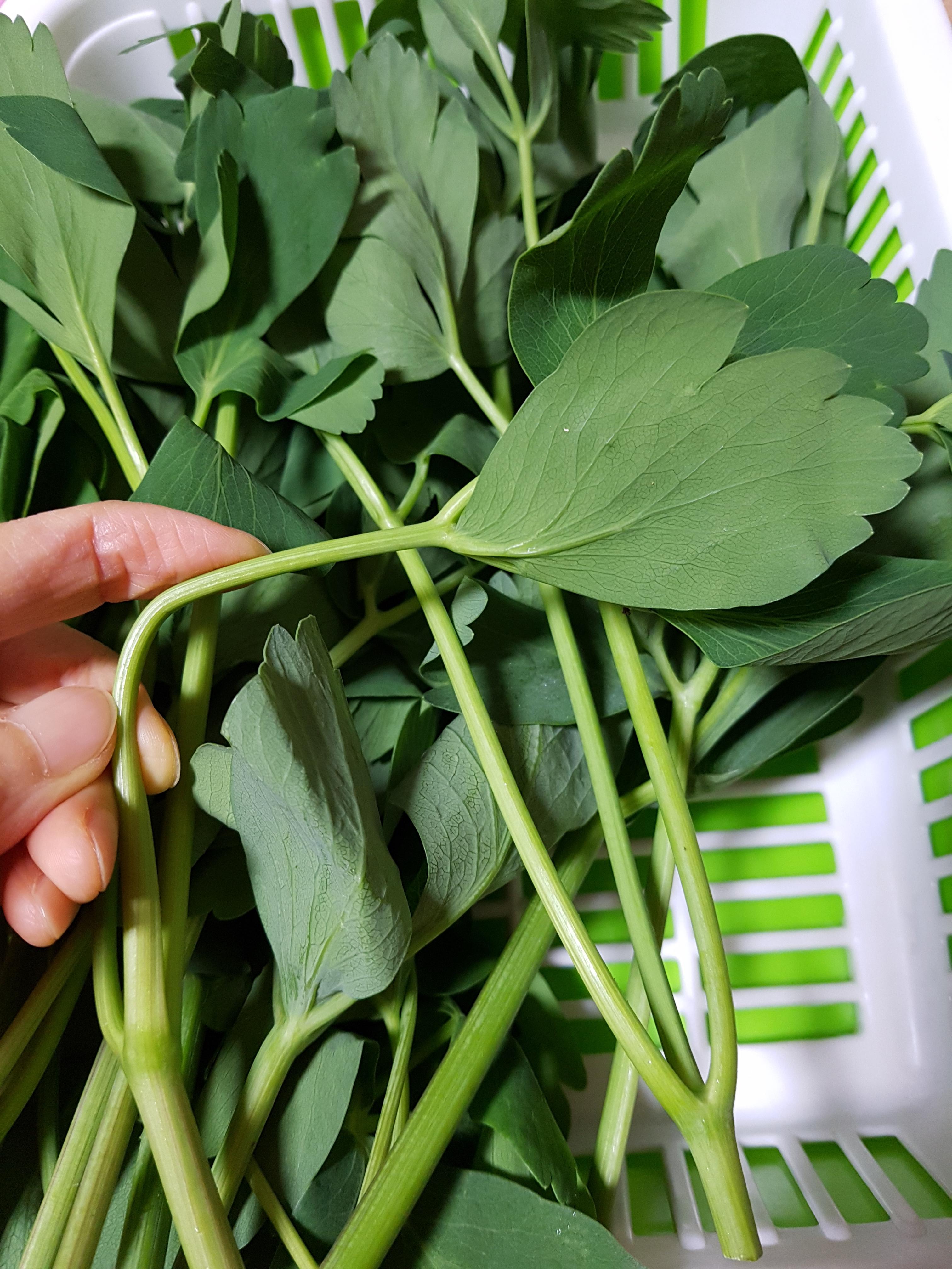 요만큼 방풍 잎사귀를 따고