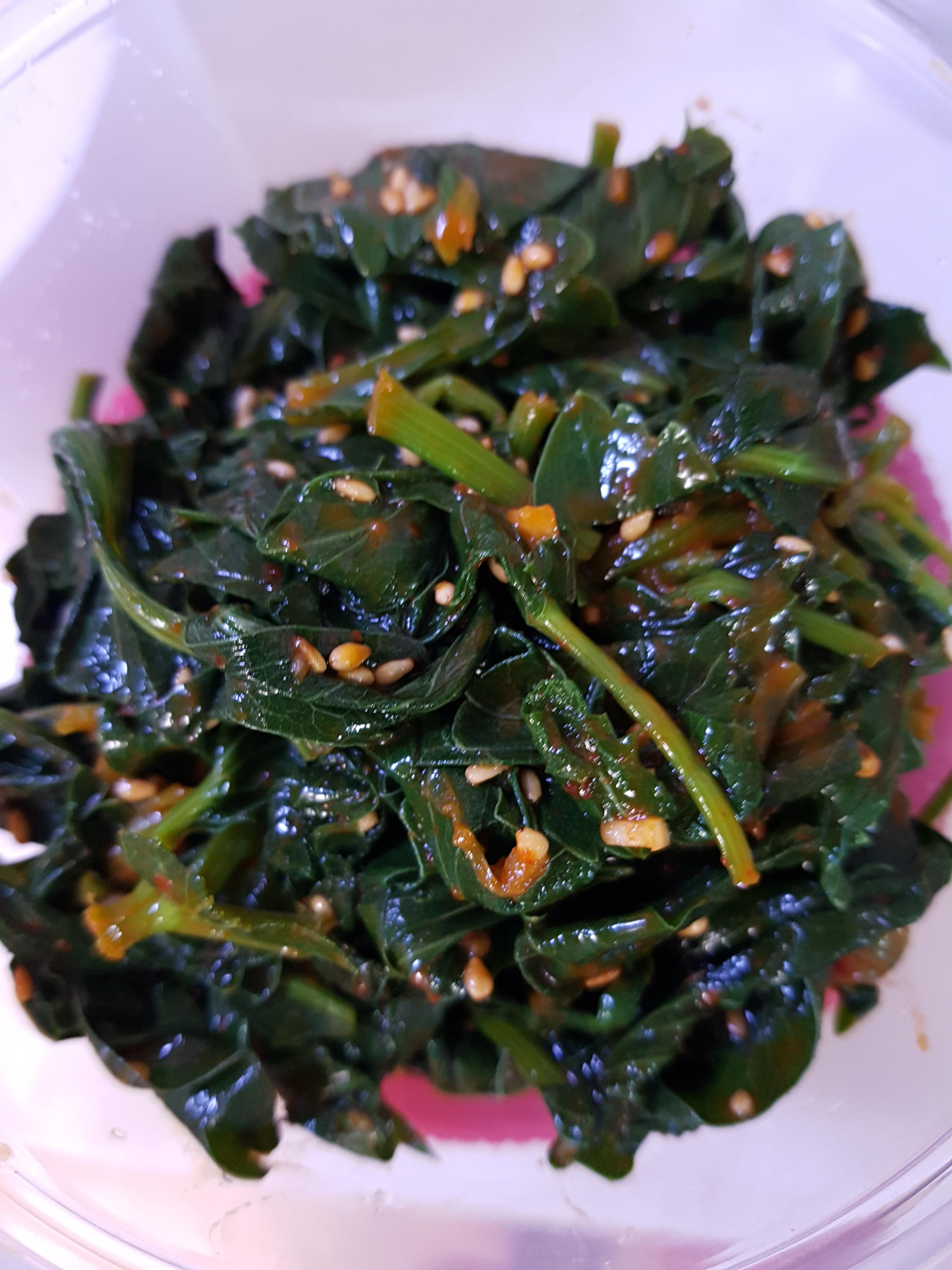 방풍잎을 삶아 너무 꼭 짯더니 무치는데 어려워서 매실을 좀 더 넣고 무쳤더니 새콤달콤매콤합니다~