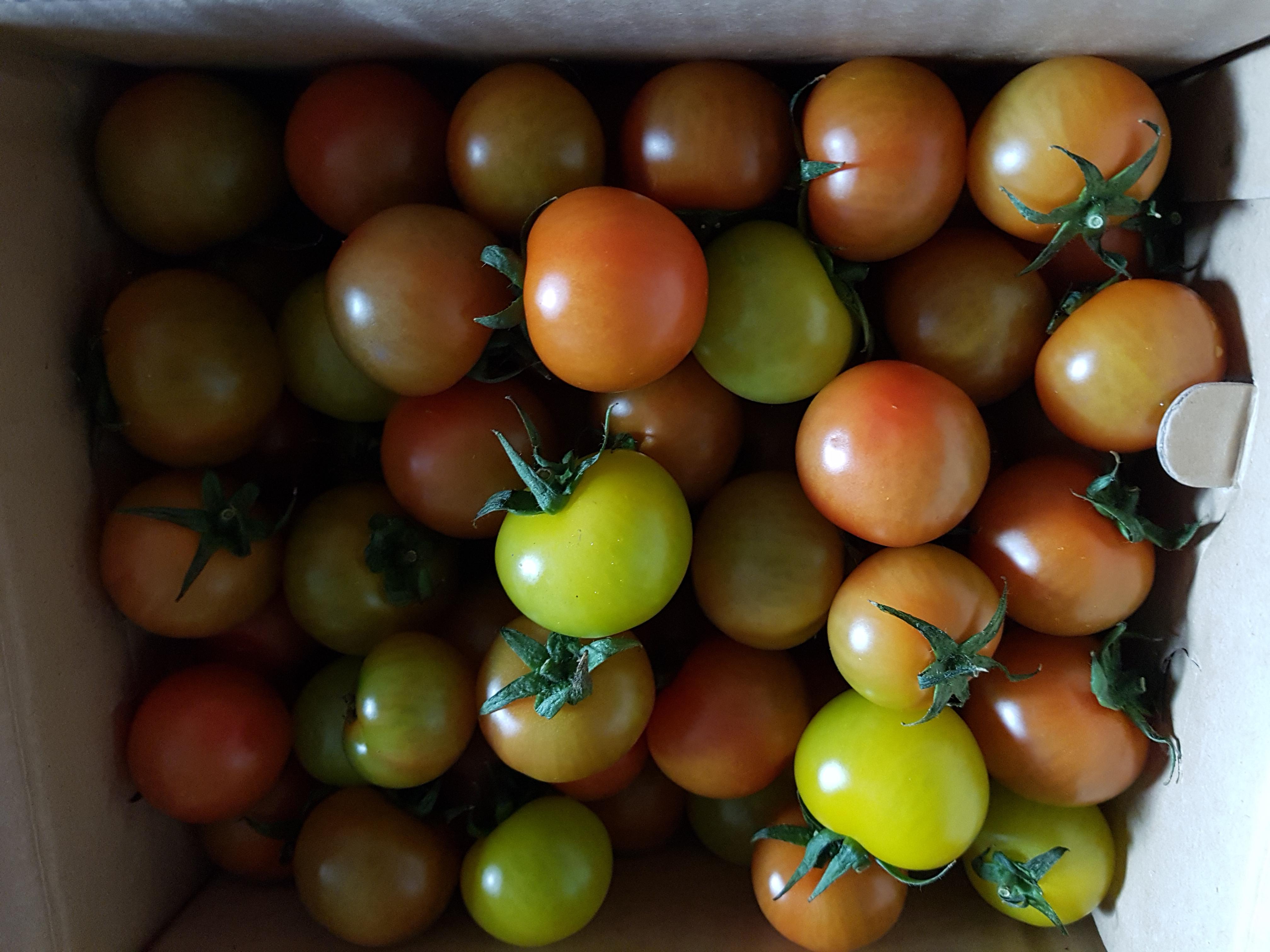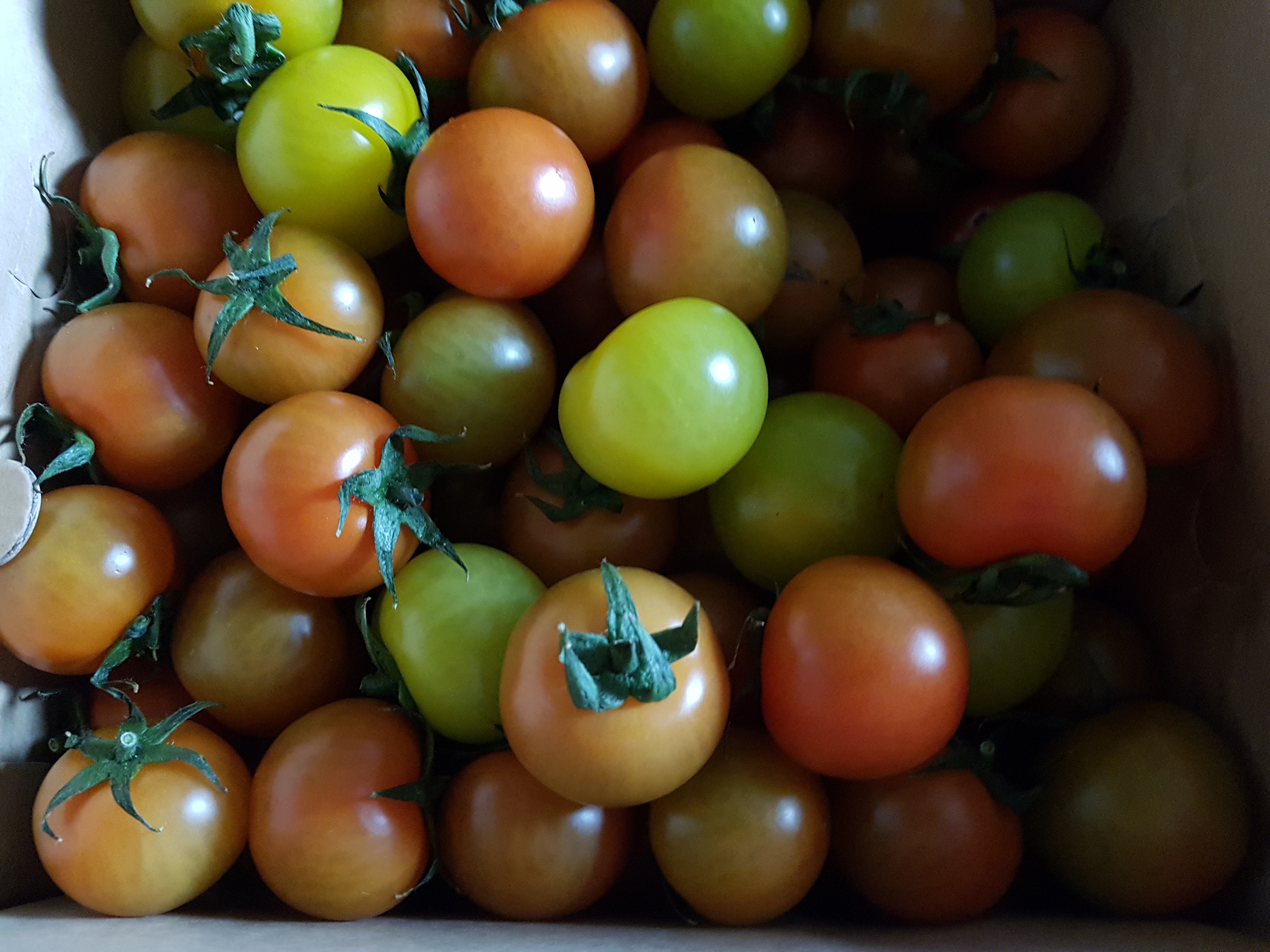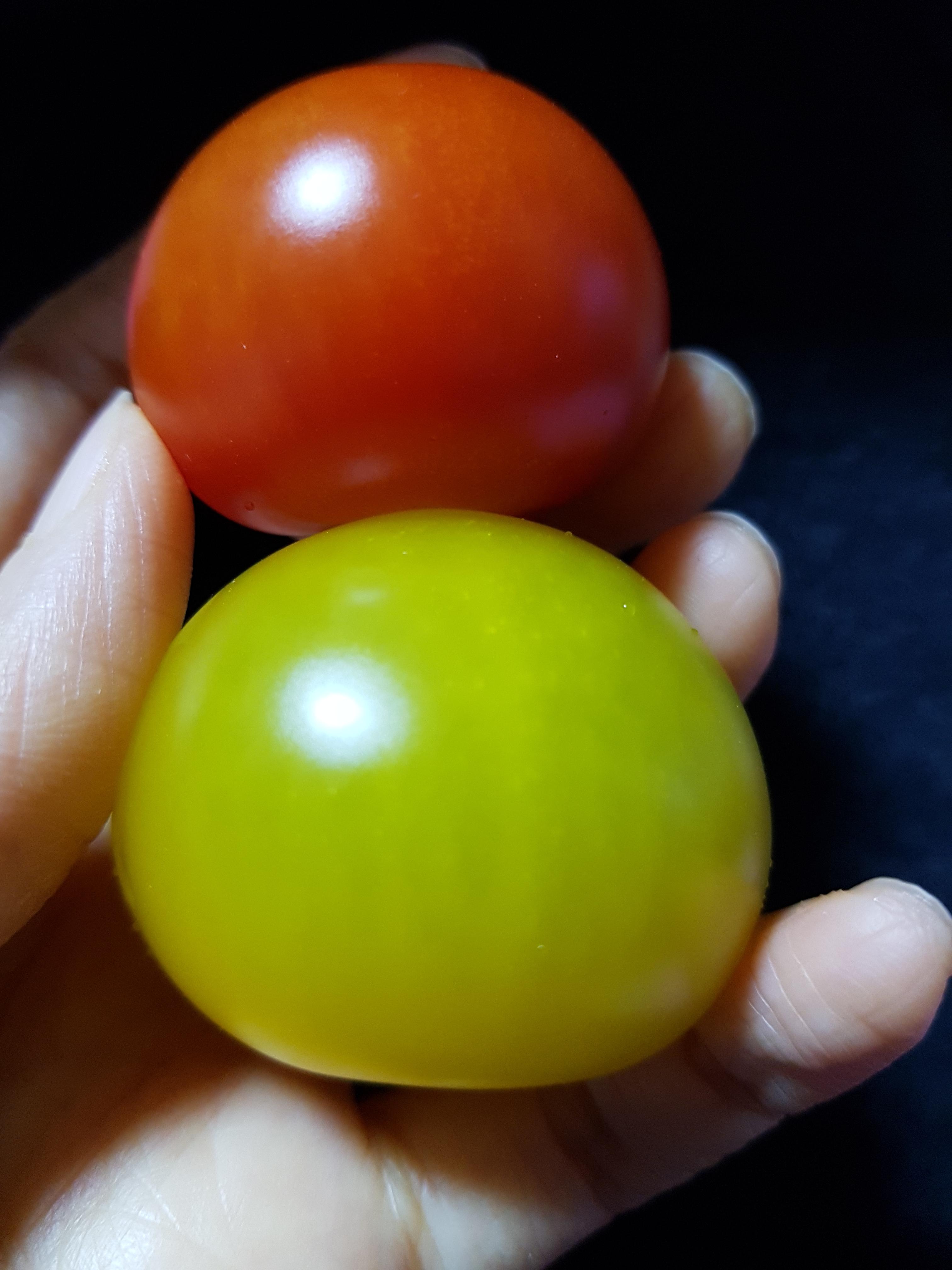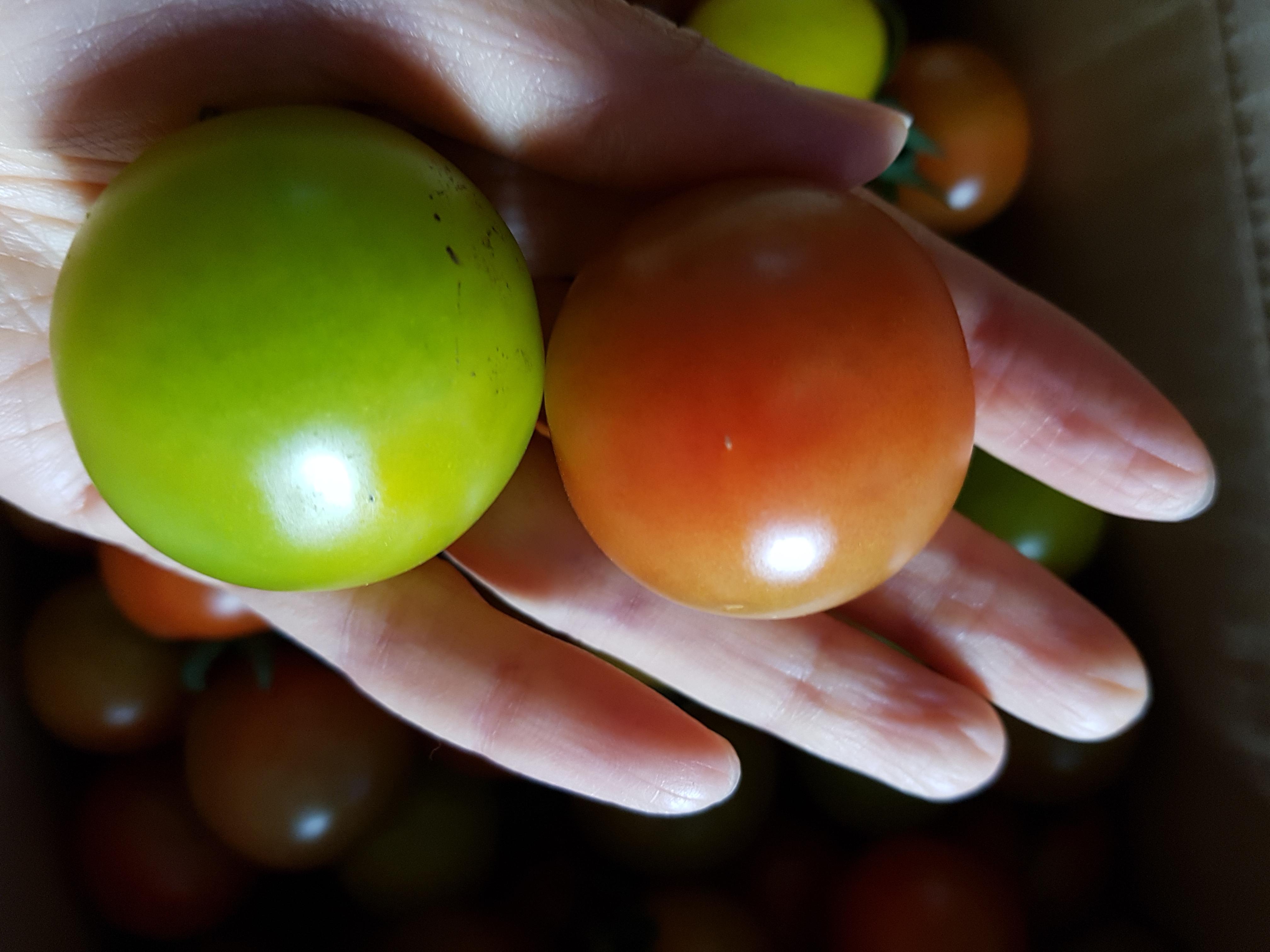 덜 익은 상태서 수확해서 토마토 색상은 아직 빨갛거나 노랗지 않네요~