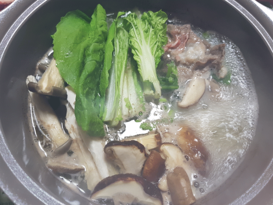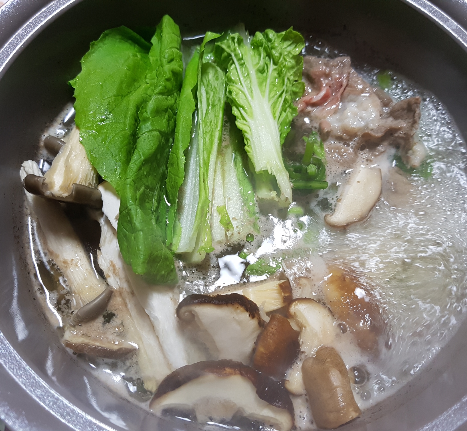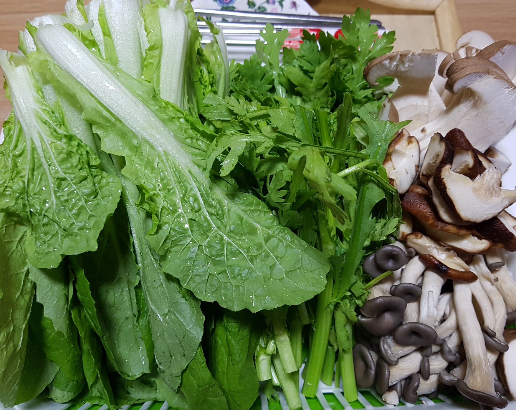 야채도 집에 있는 얼갈이, 쑥갓, 새송이버섯,느타리버섯, 표고버섯 있어서 넣었습니다.
