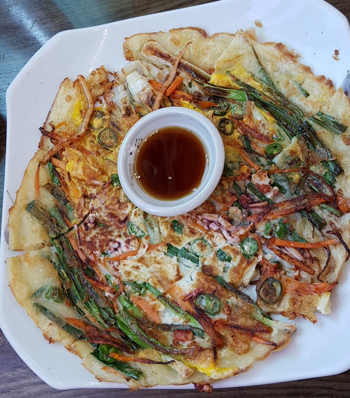 반죽이 씬 피자 마냥 얇게 부쳐내 바삭한 식감이네요~