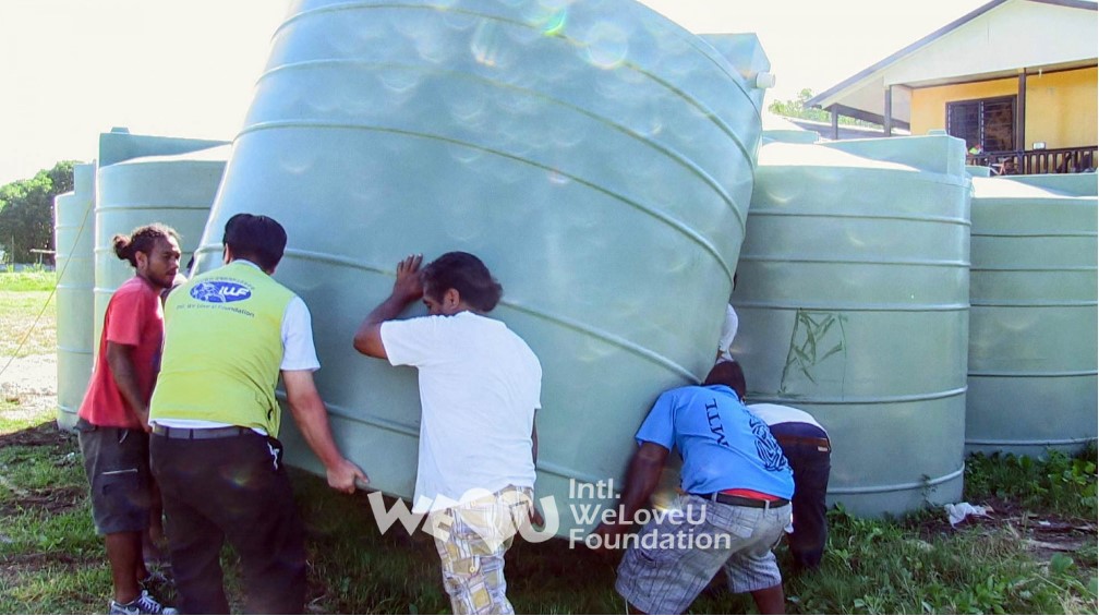 “국제위러브유운동본부에서 남부와 수도 섬에 물탱크를 공급하겠다는 행복한 소식을 전해주었다.