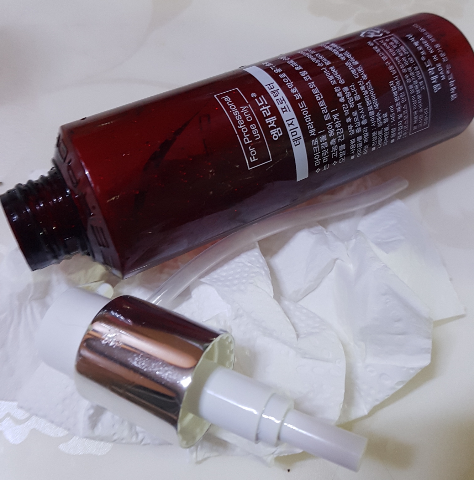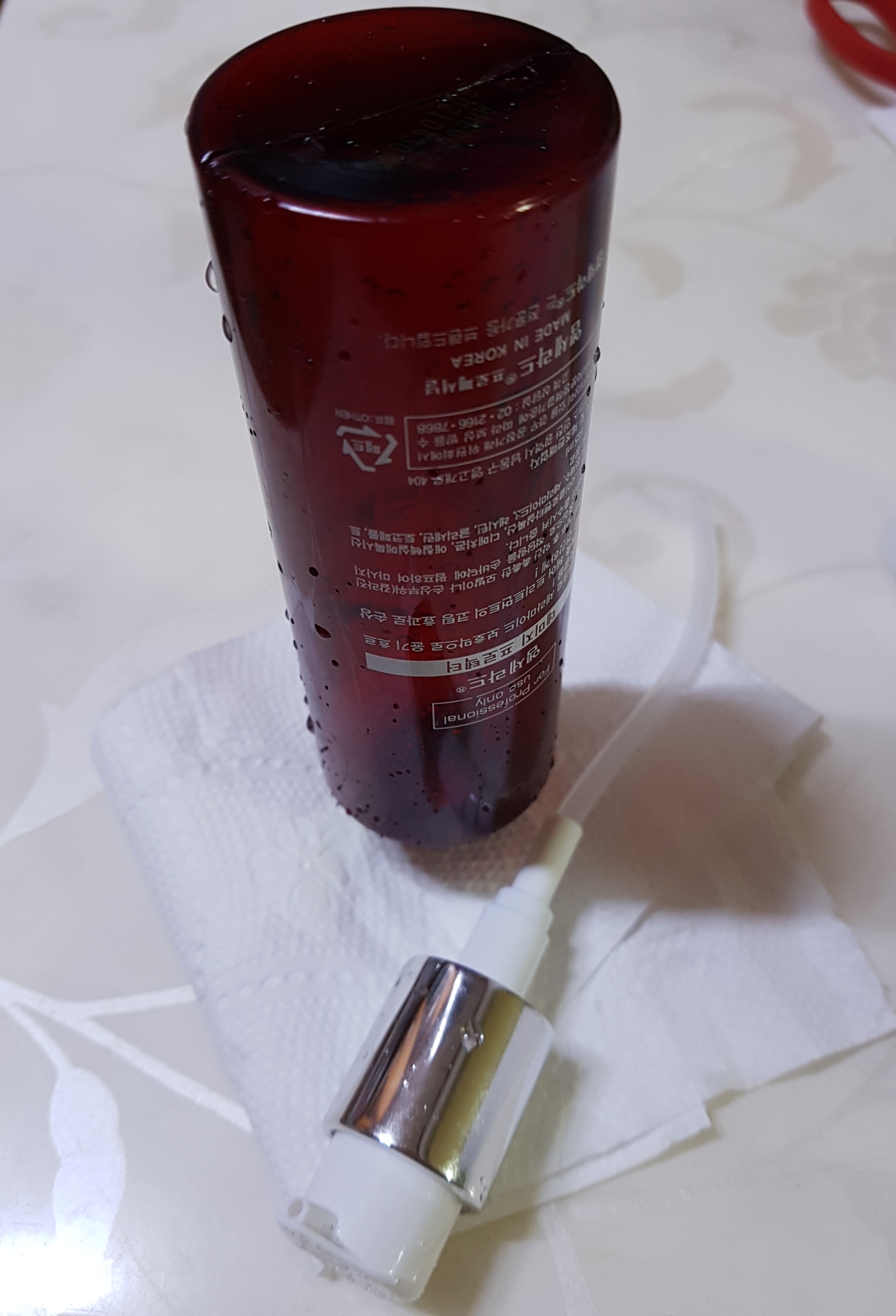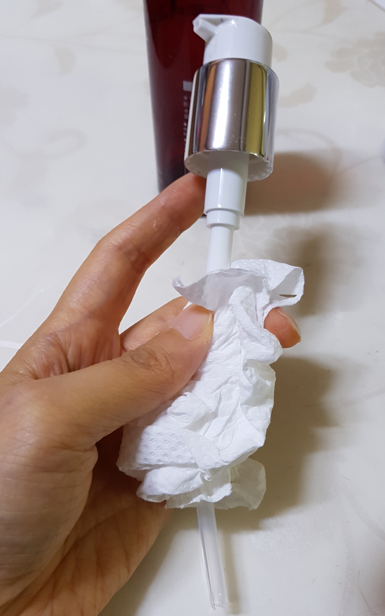 오일제품의 헤어에센스여서 먼저 뚜껑을 열어 기름기를 좀 닦았어요.