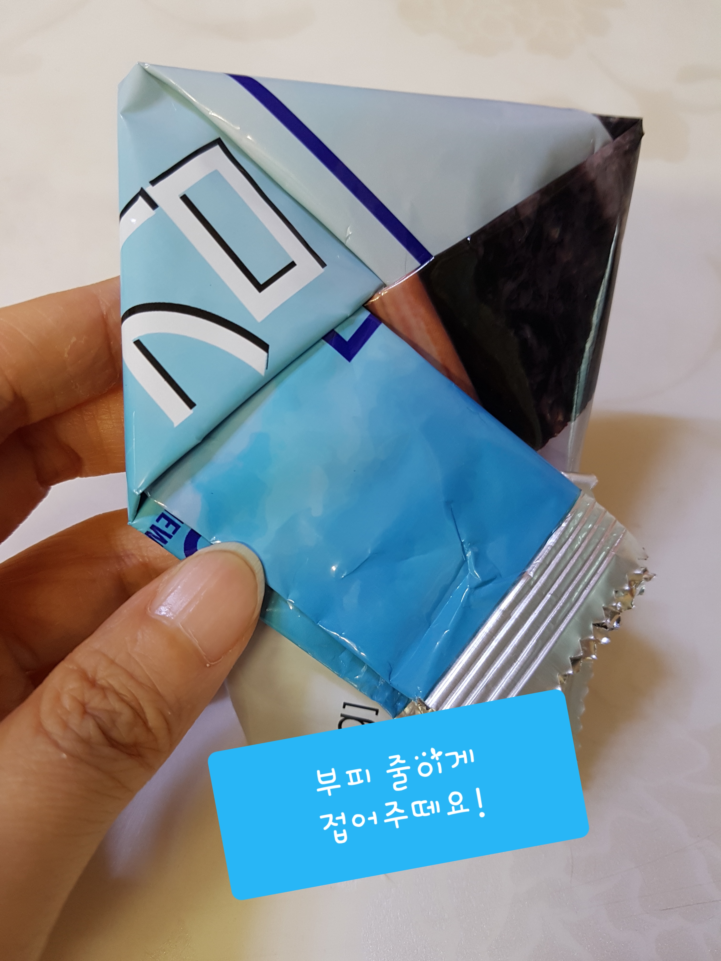 닦아낸 김 봉지는 부피를 줄이기 위해 접어줍니다.