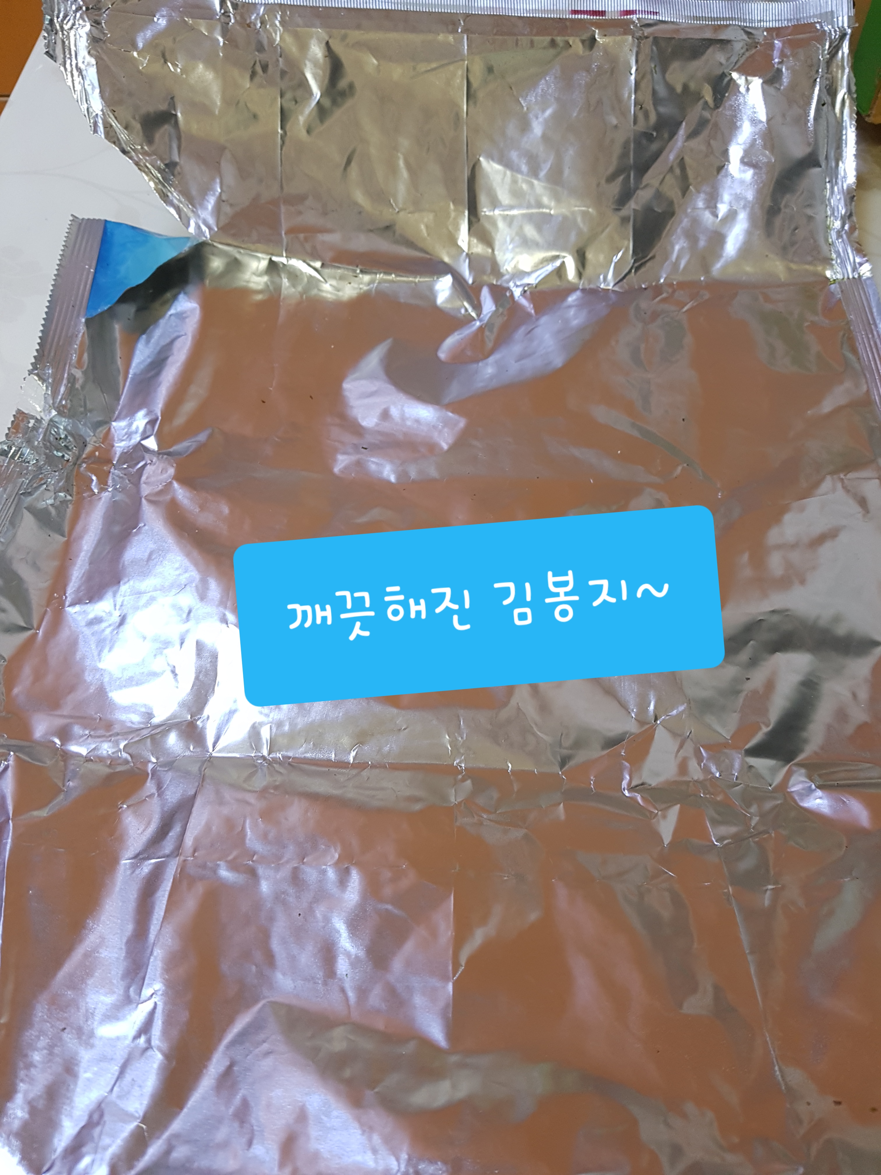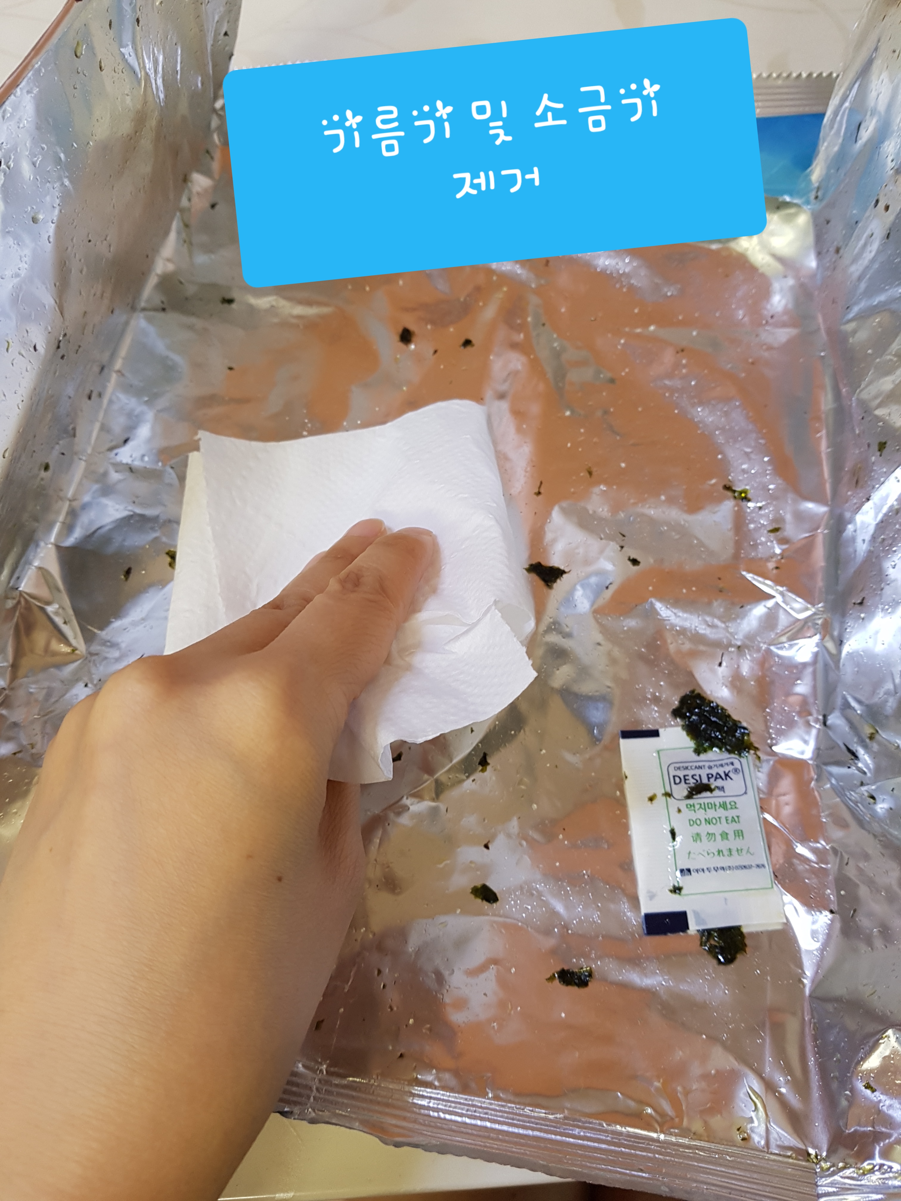 김 봉지안에 묻어있는 기름기와 소금기는 휴지로 닦아냈어요~