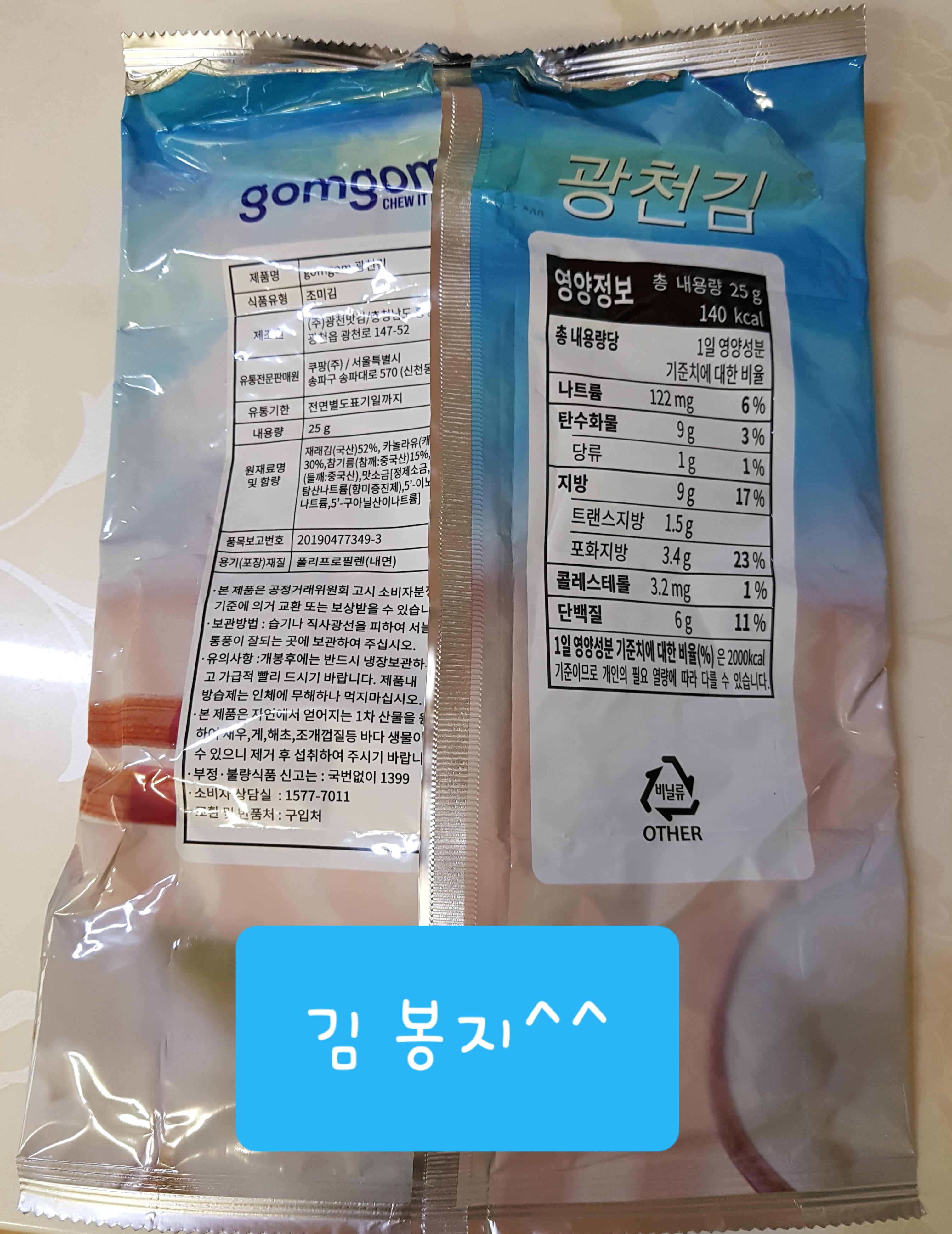 다 먹은 김 봉지는 비닐류 이긴 한데 "other"