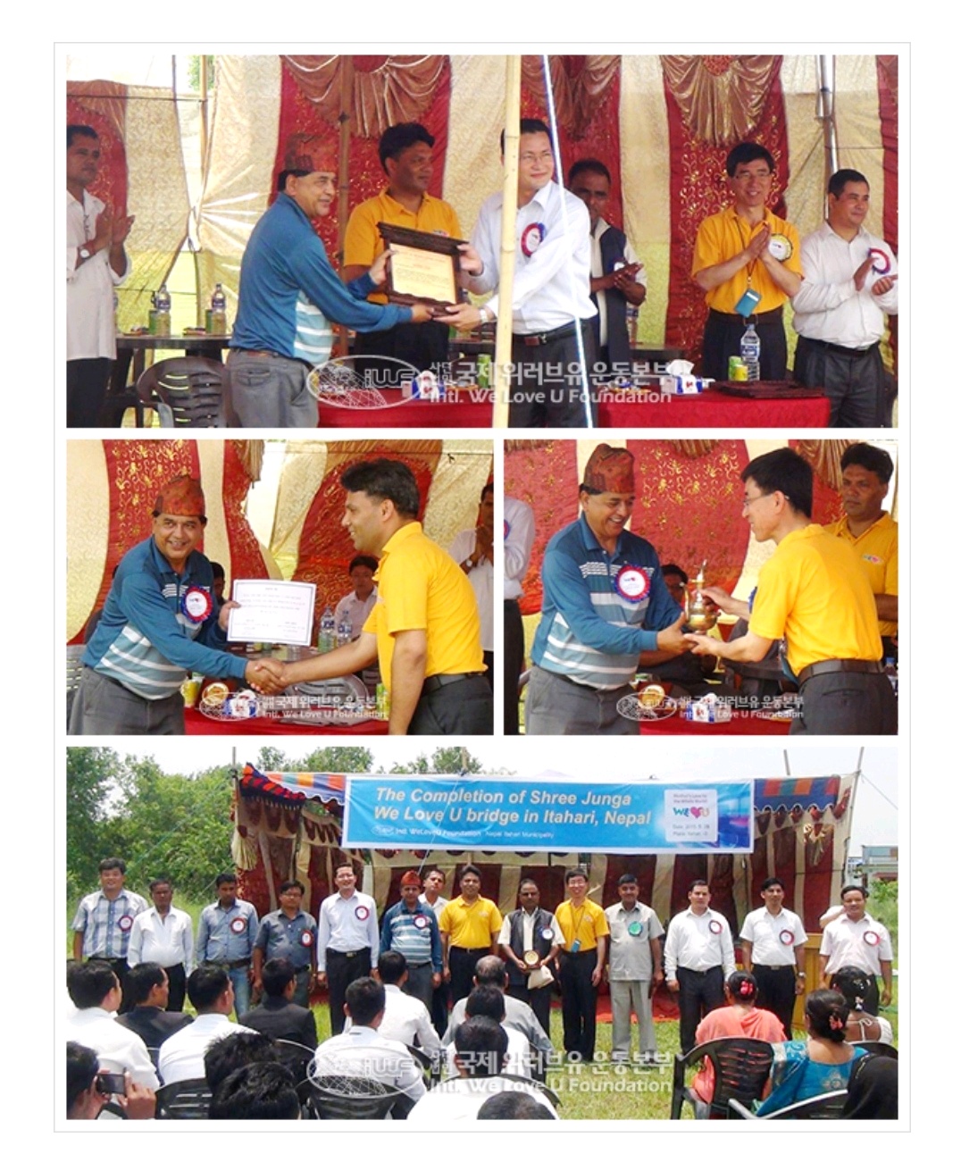 마을 발전에 대한 공로로 국제위러브유(장길자회장님)는 네팔 이타하리 시장으로부터 감사장을 수여받았습니다.