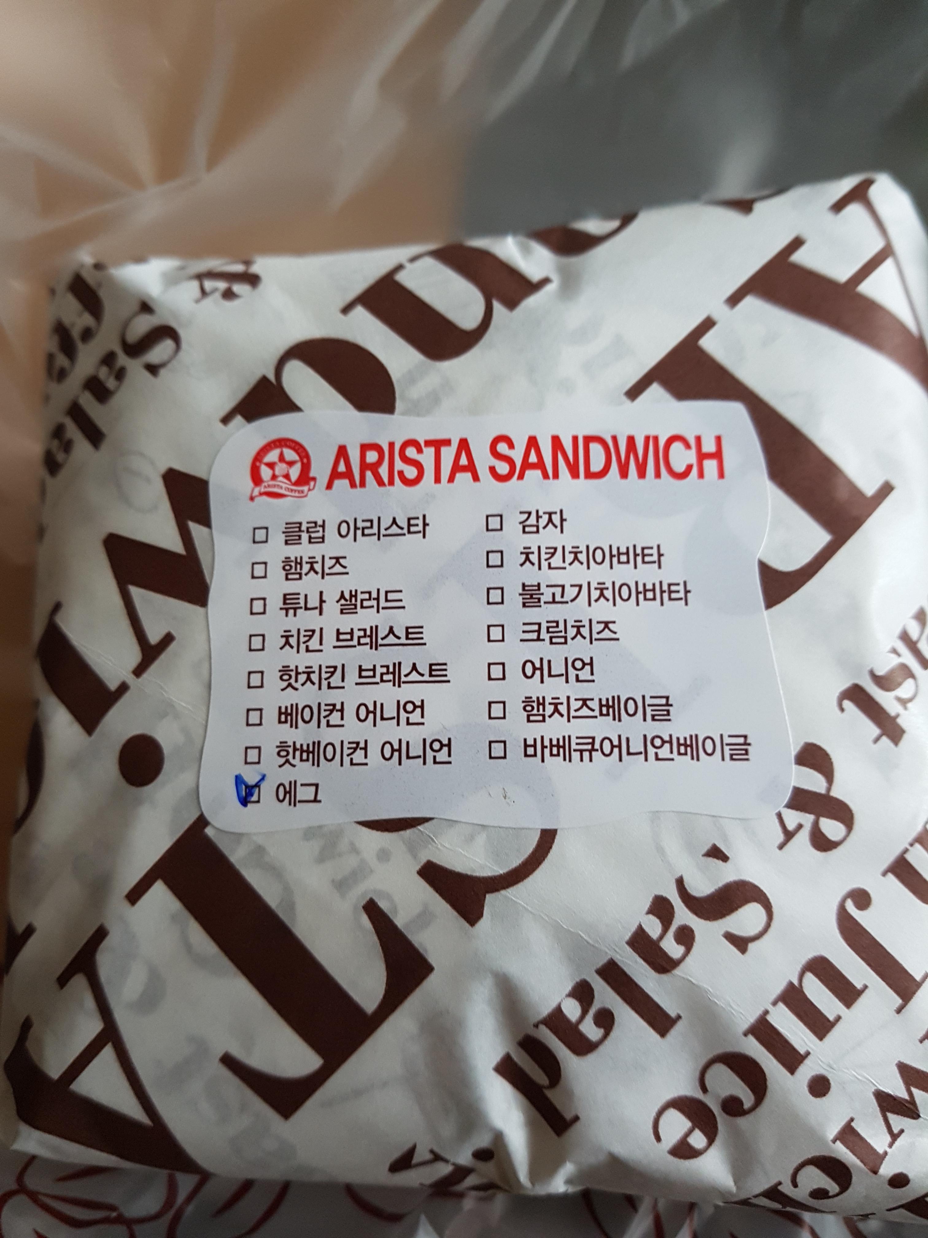 ARISTA COFFEE에서 샌드위치랑 커피 주문해 가야겠어요~