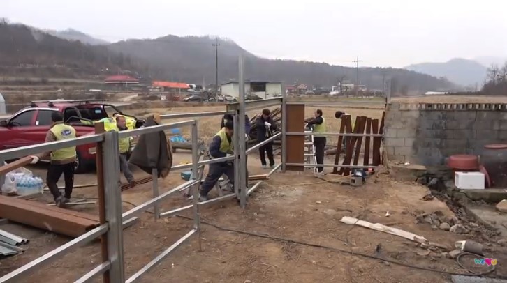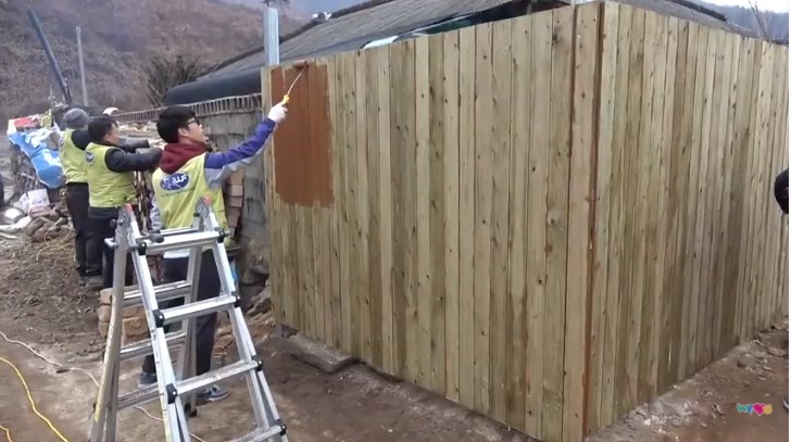 국제위러브유 회원들은 지붕 수리, 울타리 제작