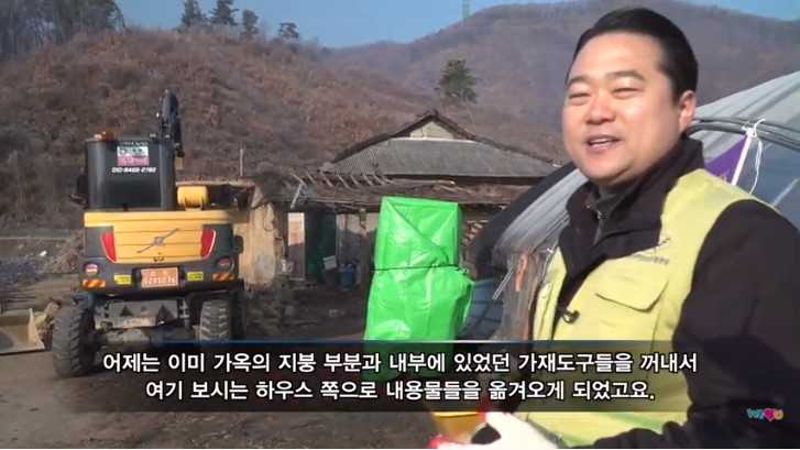 가재도구를 꺼내서 하우스 쪽으로 물건들을 옮겼고~