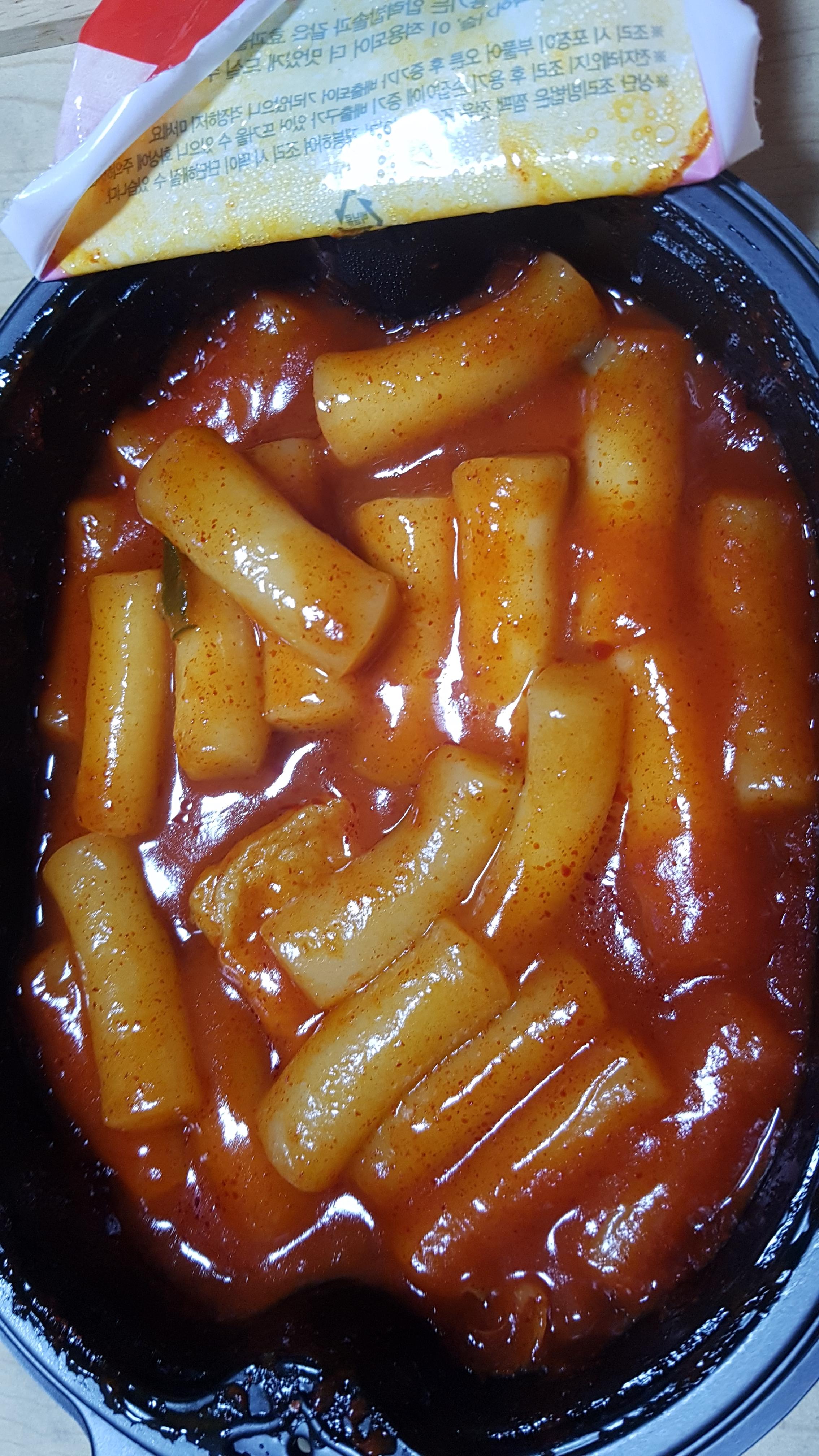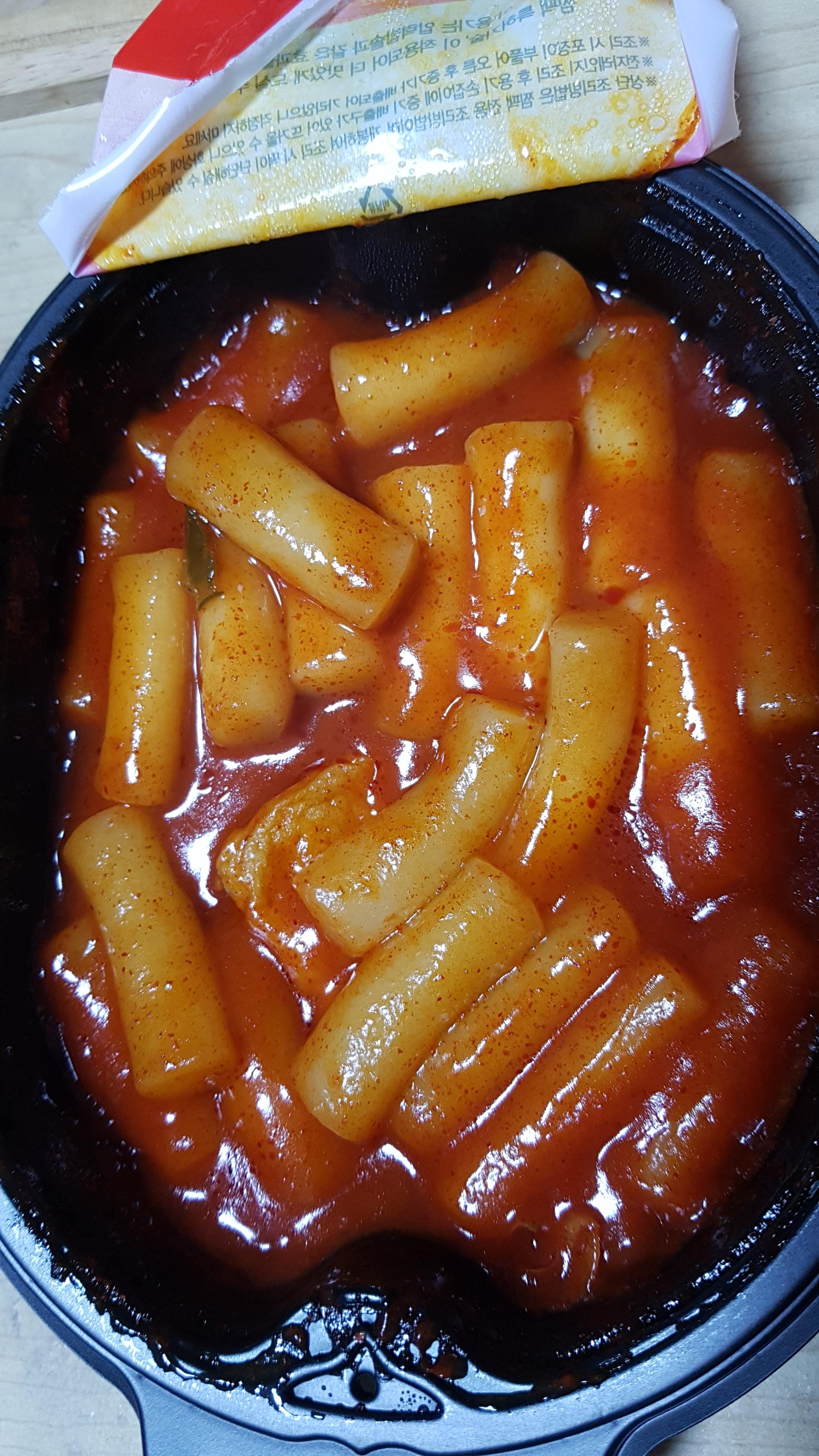 먼저 3분 돌린후 떡볶이 용기를 꺼내서 좌우로 흔들고 다시 2분20초 돌리라고 되어있어요.