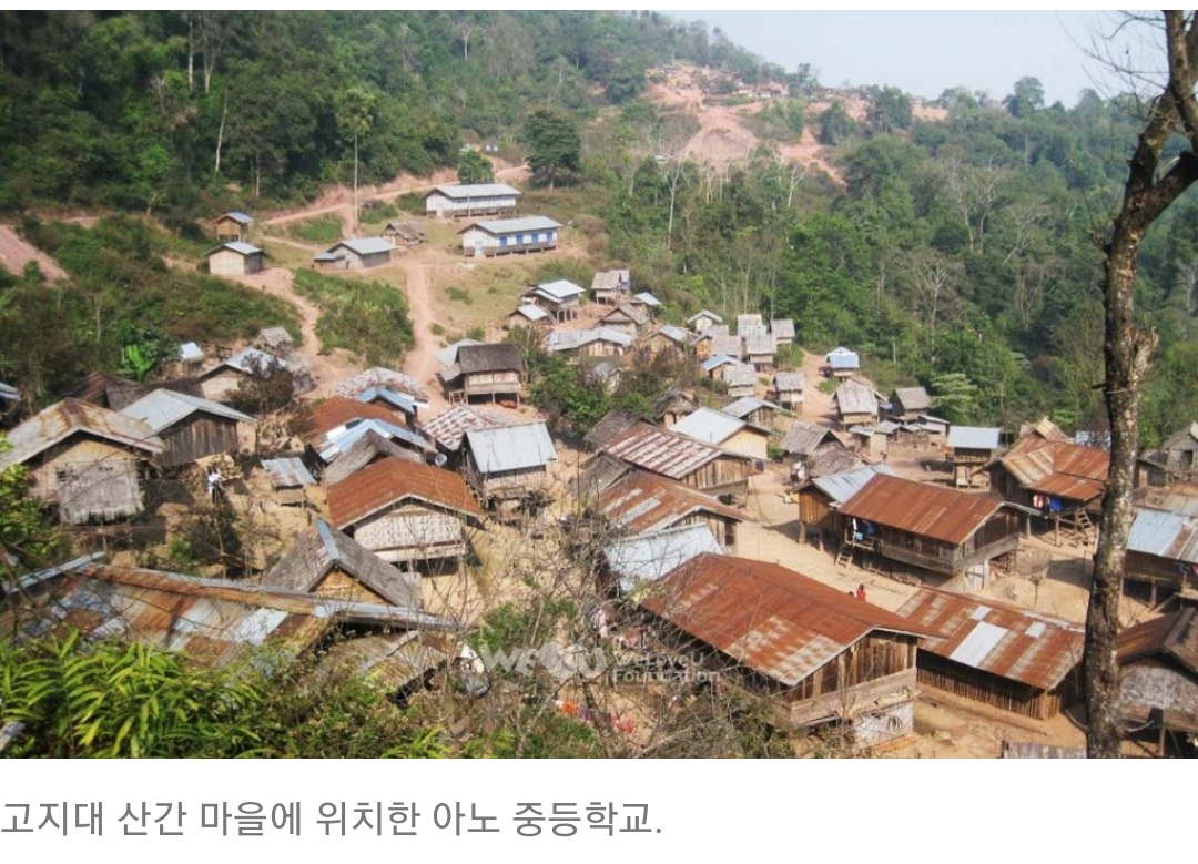 라오스 우돔사이주의 무앙라 지역은 수도에서 550km 떨어진, 해발1250m의 고지대. 이곳 중심지에서 30km 더 산 정상 쪽으로 들어가면 중학교 1학년부터 고등학교 3학년까지 아카족 등 소수민족 학생 290여 명이 다니는 아노 중등학교가 있다.