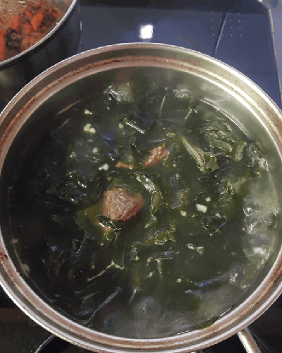 물을 가득 더 추가해주고 요리용천일염과 조선간장 넣어서 푹 끓여줍니다.