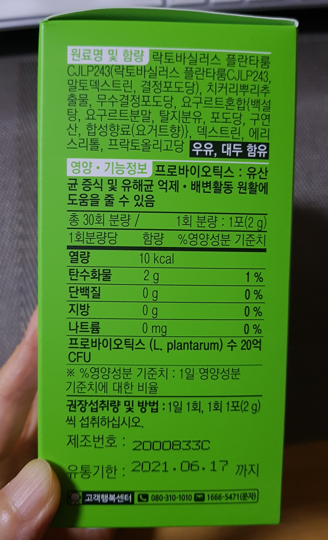 가루 유산균이 특별히 먹기불편하거나 하지 않아서 CJ꺼도 후기가 많고 괜찮다기에 사봤어요.