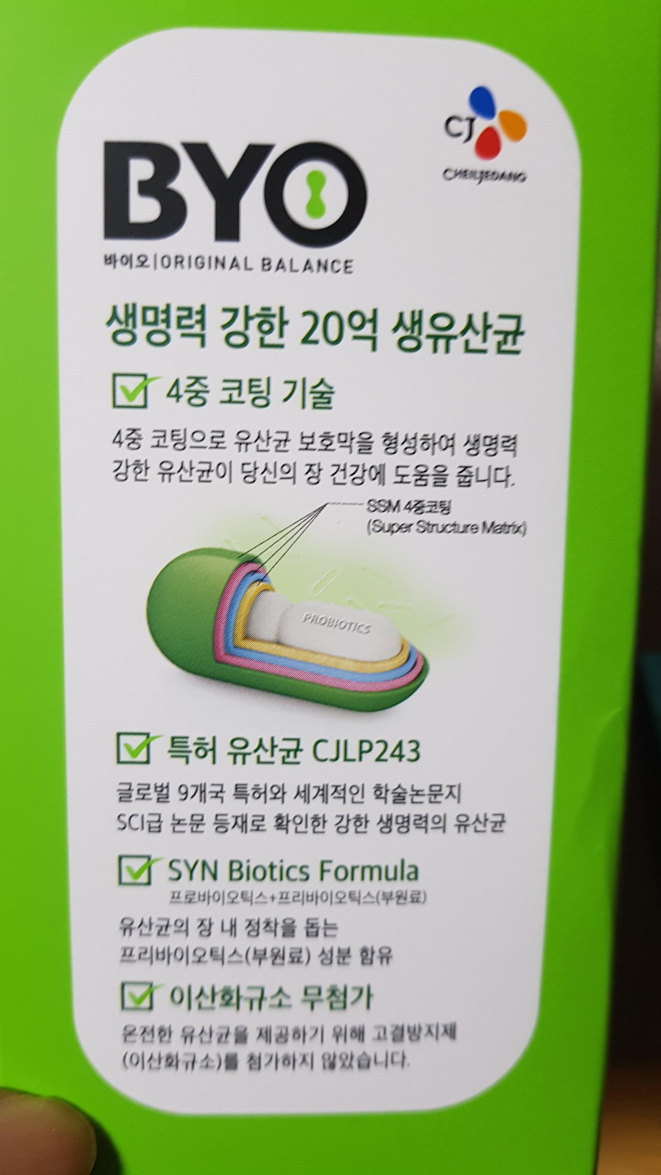 그래서 이것저것 찾아보다 캐나다산 500억 유산균 캡슐형과 CJ꺼 고민하다 BYO 유산균으로 구매해봤습니다.