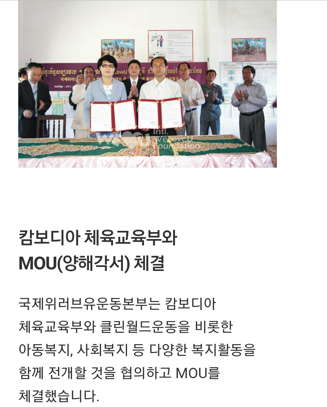 앞서 2011년에는 캄보디아 체육교육부와 국제위러브유는 MOU를 체결한바 있는데요~