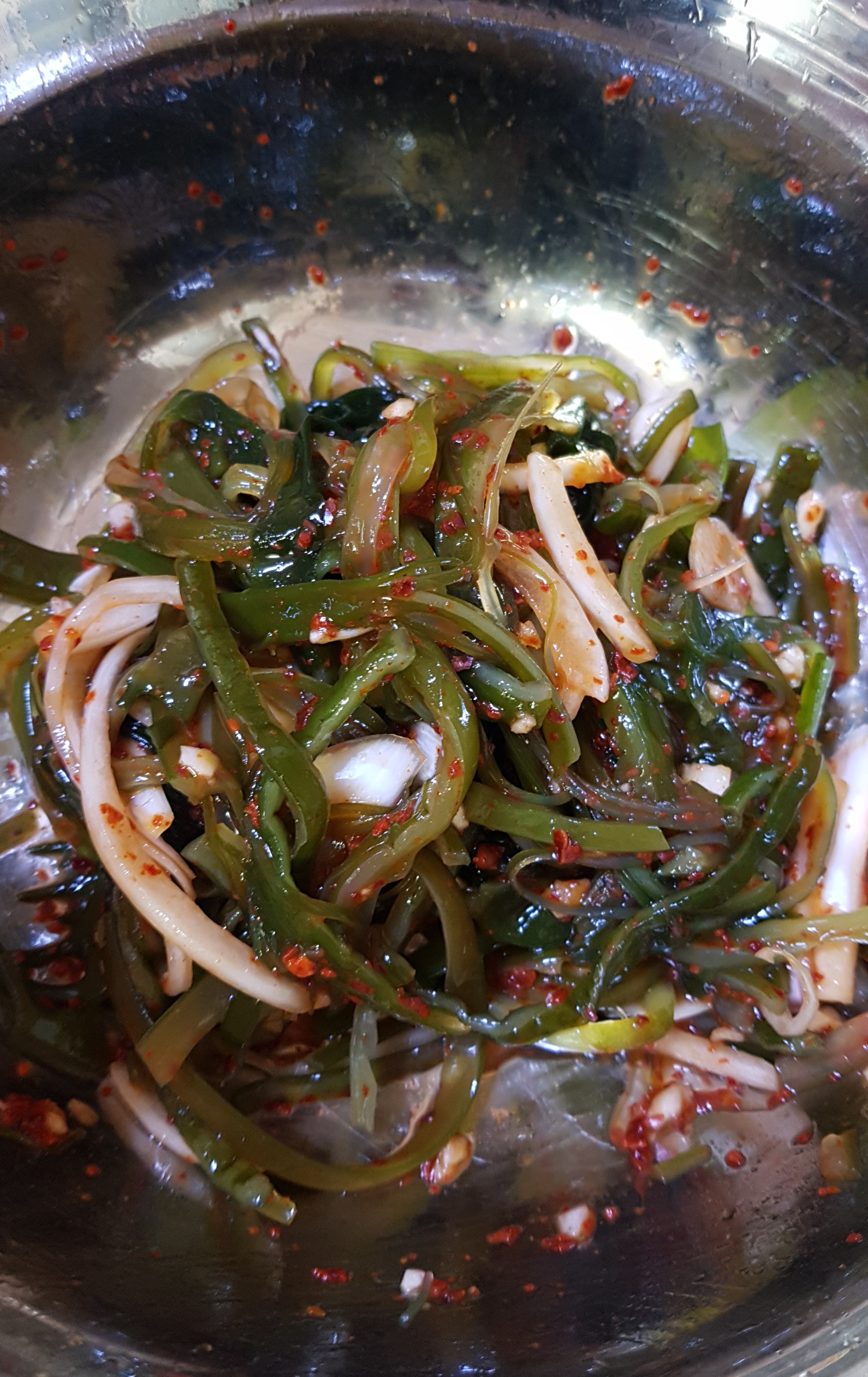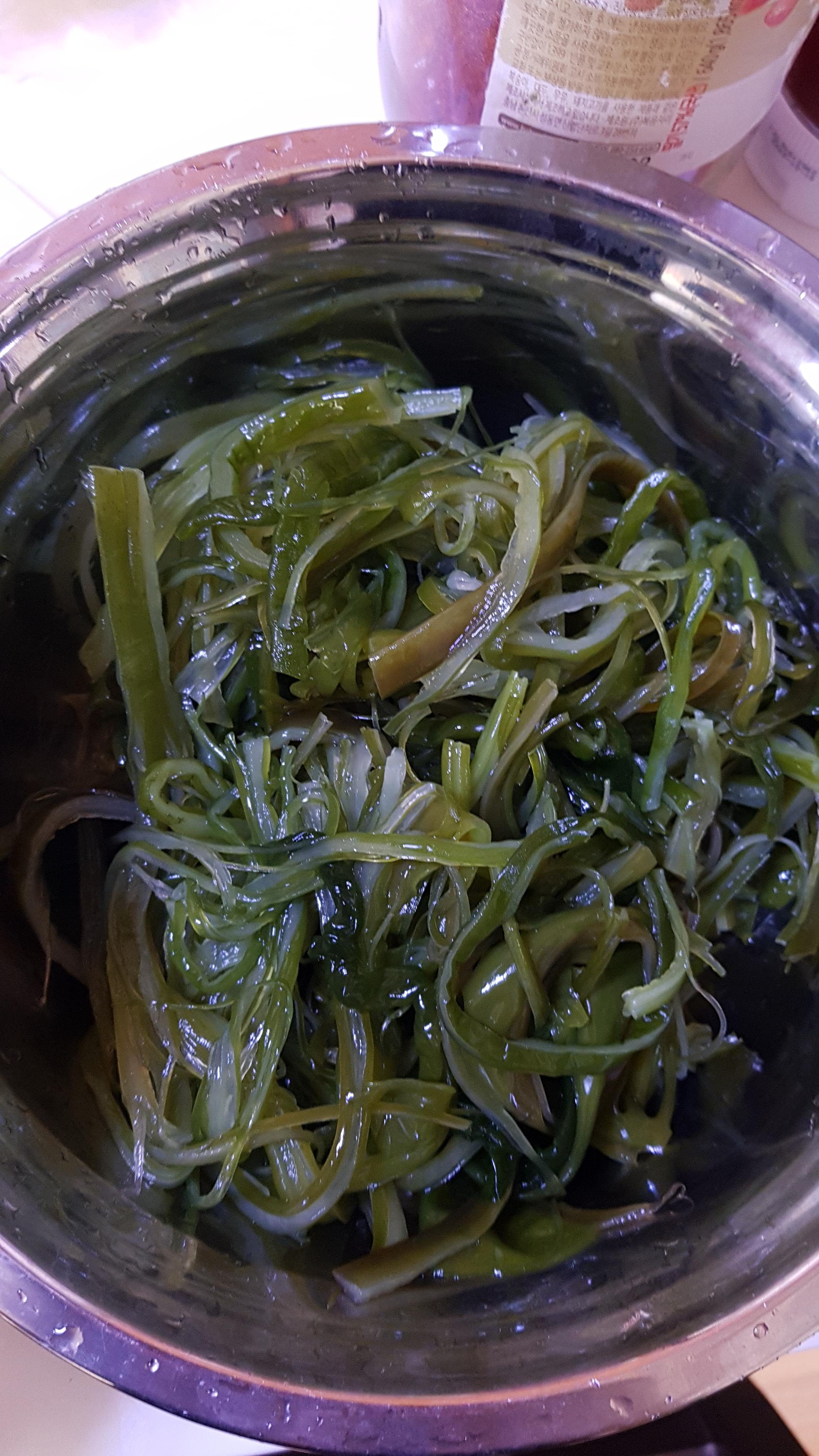 제가 좀 미역 줄기를 오래 담궜더니 좀 미끄덩 거리는게 있어서 초고추장 무침은 실패했구요.