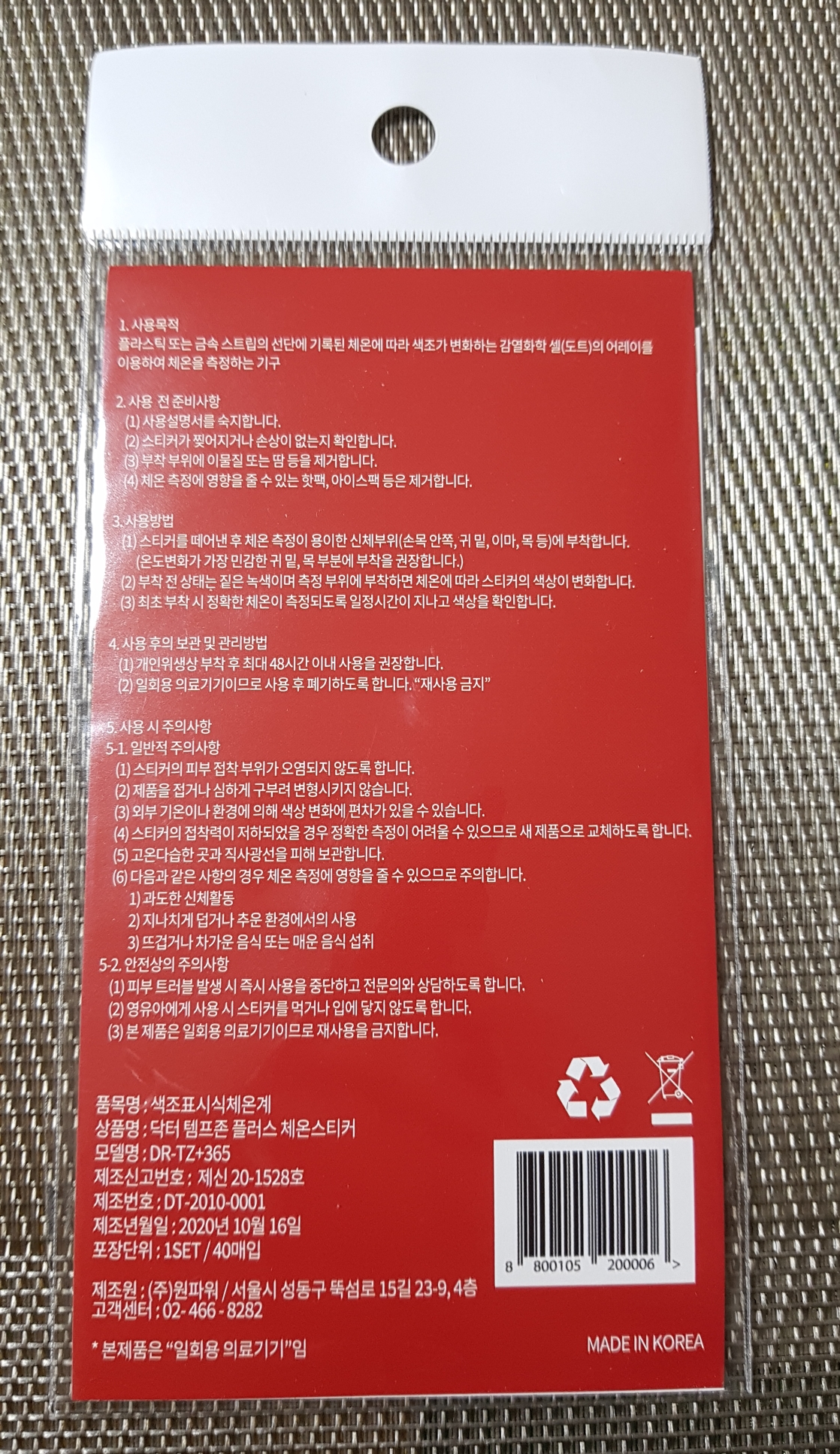 일회용 붙이는 체온계, Dr. Tempzone+ 닥터 템프존 플러스~ 스티커 40매가 들어 있어요!