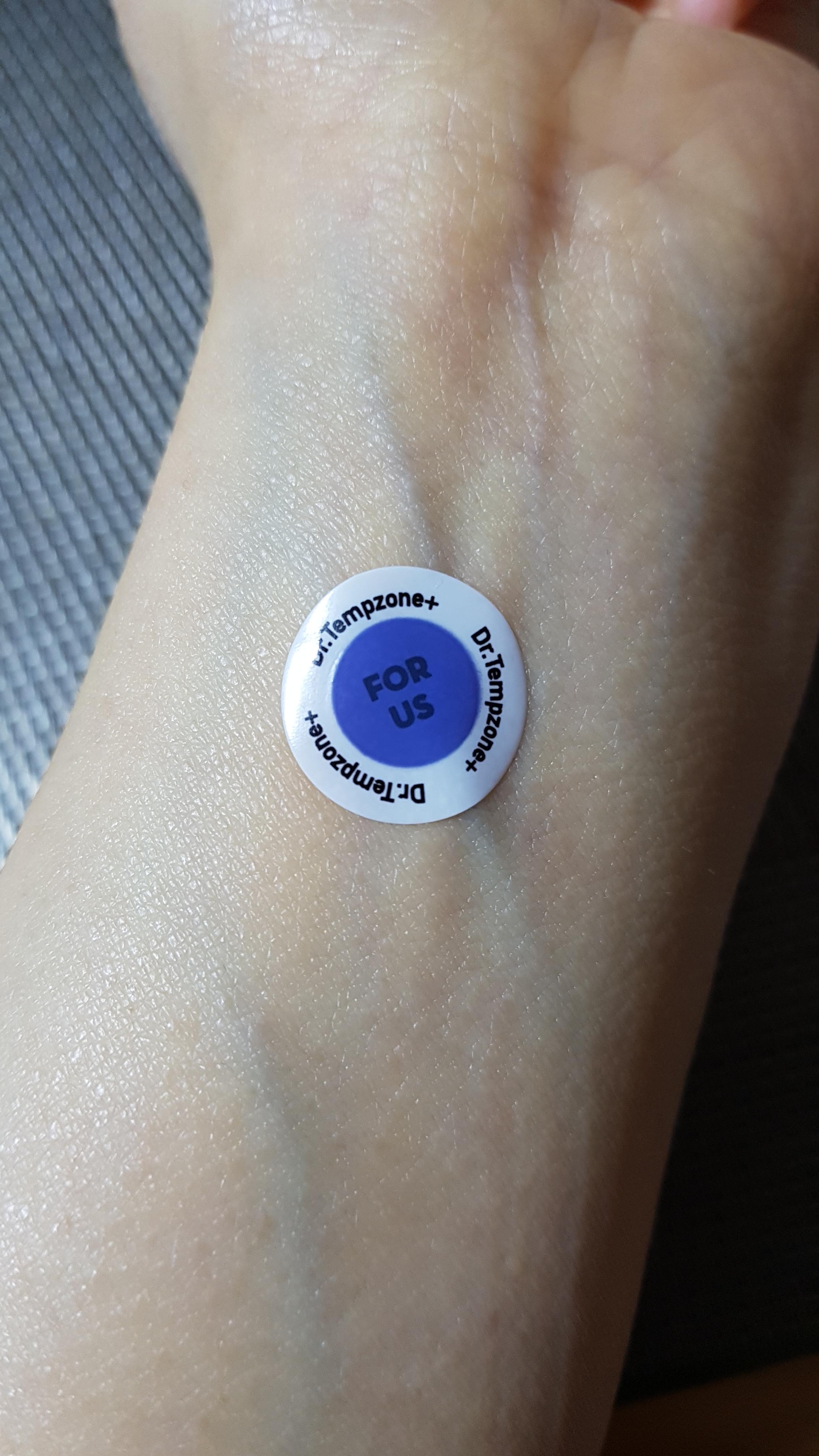 이미지의 모습과 같이 동그란 스티커 형식으로 붙이고 어느정도 시간이 지나면 내 체온에 따라 색상이 변하는 체온 측정 스티커입니다.