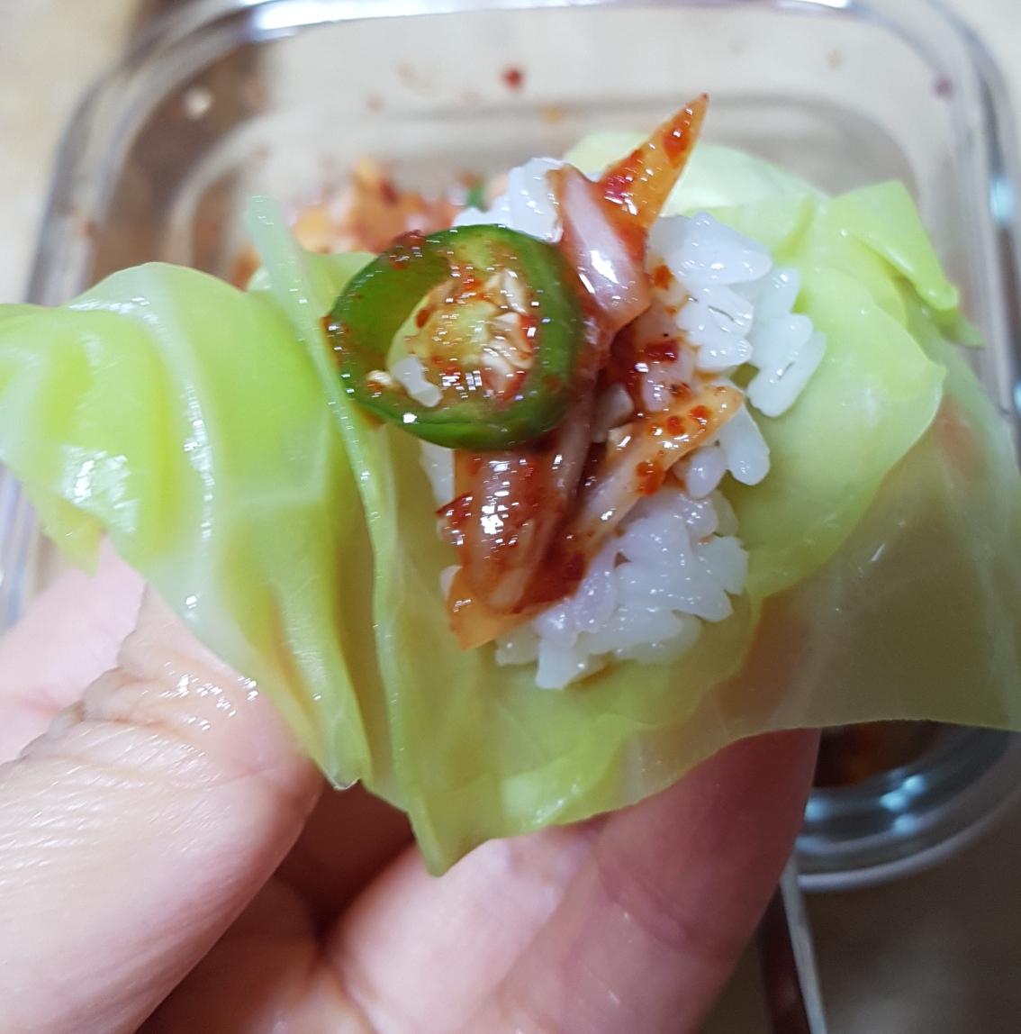 그래도 양배추에 쌈젓?양념넣고 먹었습니다.