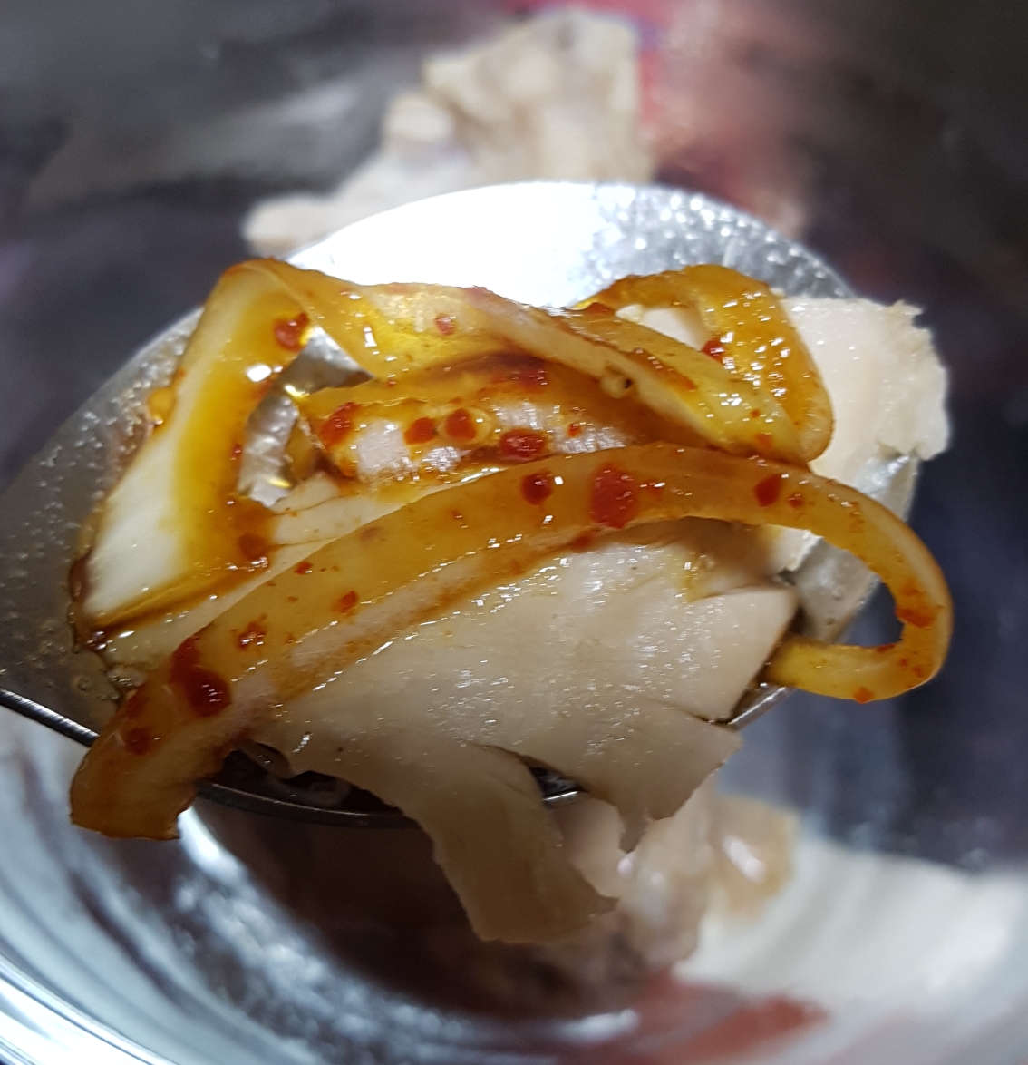 닭은 건져서 먹고 이후에 칼국수면 넣어서 끓여 먹어도 좋죠~ 오늘은 그냥 닭만 먹었어요.