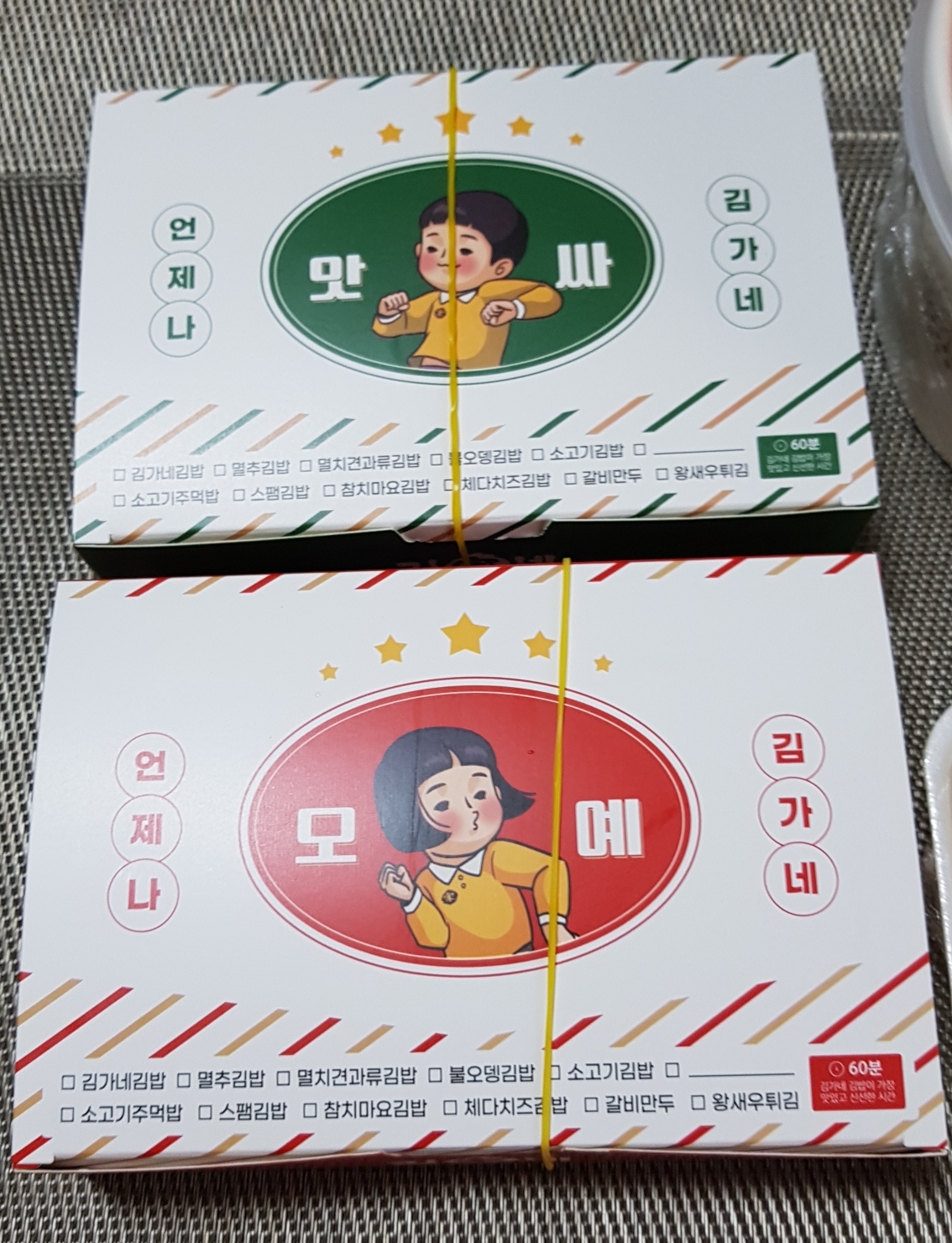 김가네 김밥 포장이 깔끔하고 포장 캐릭터가 옛추억 떠오르네요~