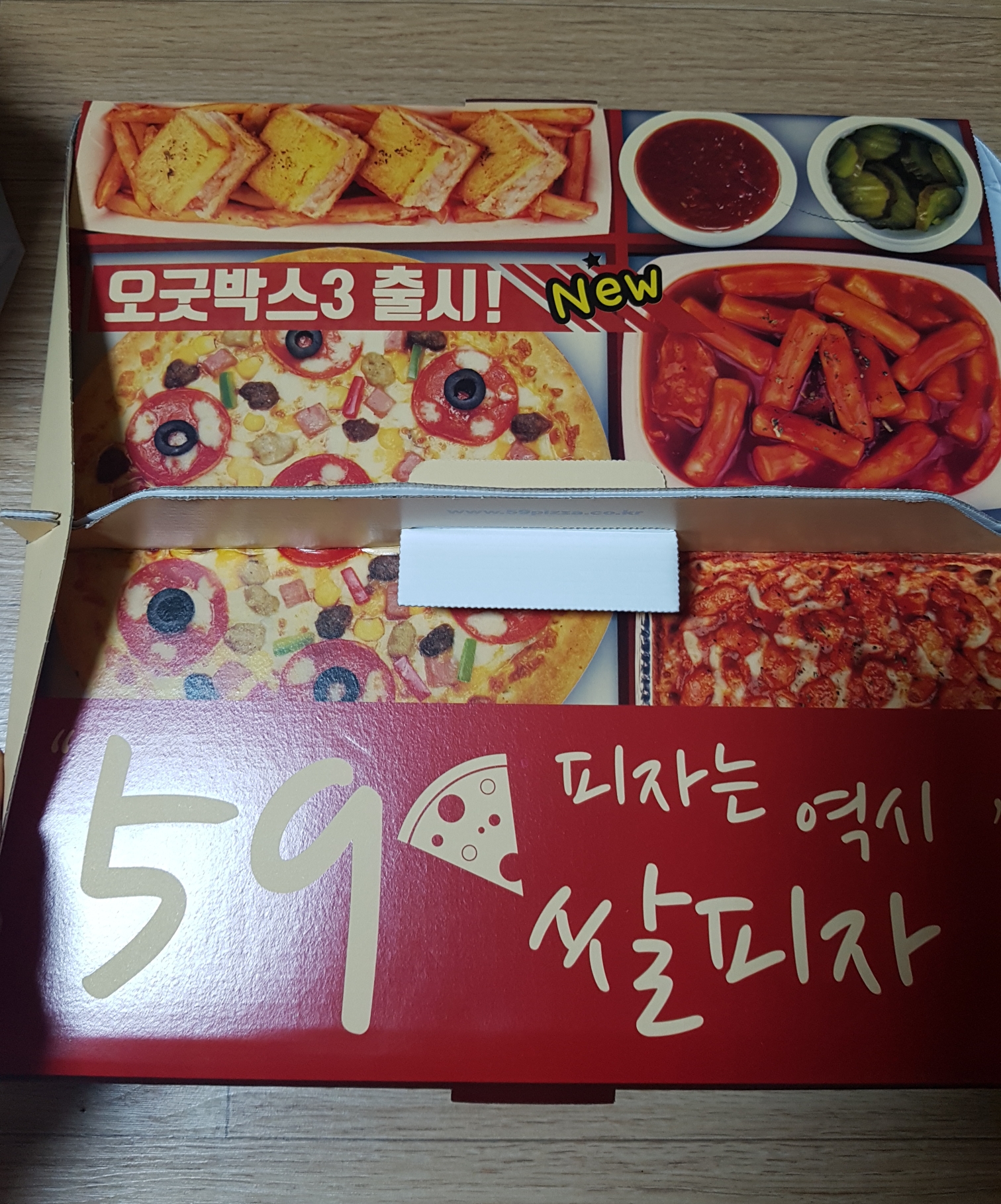 오랫만에 59쌀피자에서 피자 주문해 먹었어요.