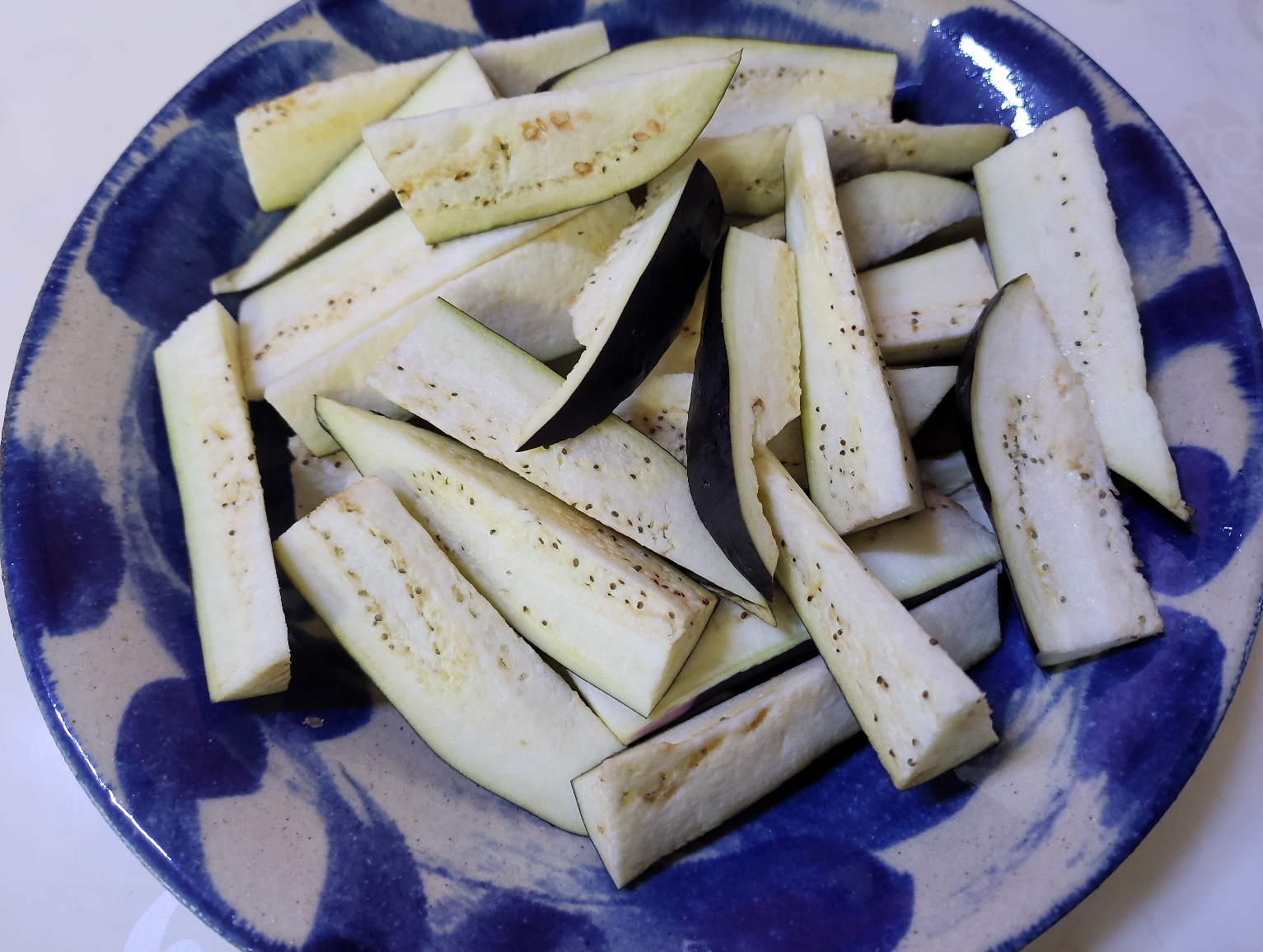가지 2개를 요렇게 잘라서 접시에 펼치고 덮어서 전자렌지 4분정도면 된다고 하네요?
