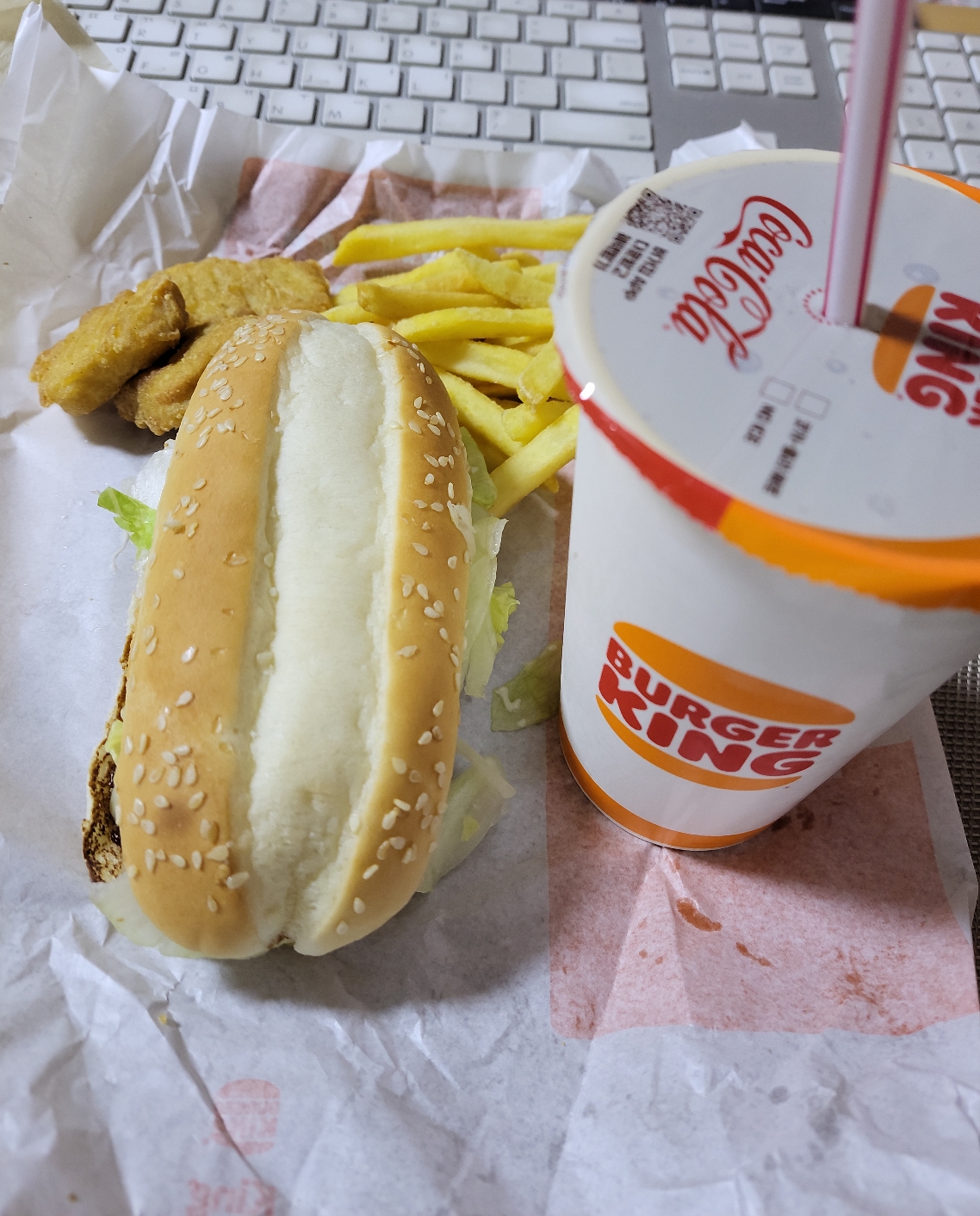 근처 버거킹으로 가서 버거세트를 사왔어요.