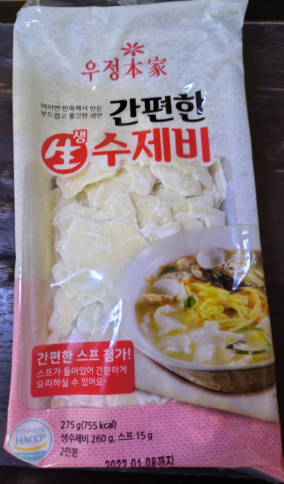 얼마전에 정육각에서 구매해둔 신선한 참바지락이 냉동실에 있어서 바지락이용할 수제비를 생각하고 마트에 들러서 우정본가 간편한 생 수제비를 한봉 사왔습니다. 칼제비를 살까하다 그냥 수제비로만 된걸 사왔는데~ 칼국수+수제비 =칼제비가 좀더 괜찮은것 같아요.