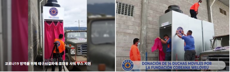 (재)국제WeLoveU는 온두라스의 안타까운 사정을 접하고 지체 없이 지원 사격에 나섰다. 지난해 11월 10일 주한 온두라스 대사관을 방문해 허리케인 피해 극복을 위한 긴급 지원에 대해 논의했다. 그리고 온두라스 재난대응상설위원회(COPECO)를 통해, 먼저 진행하고 있던 코로나19 지원을 서두르고 허리케인 피해에 대해 구체적 방안을 마련한 후 추가 지원하기로 결정했다. 그렇게 12월 8일, 온두라스 수도 테구시갈파에 코로나 방역에 용이한 위생 시설인 휴대용 샤워 부스 15대를 먼저 설치했다.