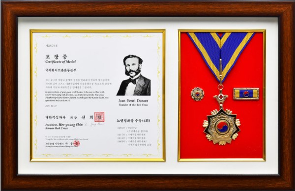 적십자 활동 재원 조성 공적에 따라 은장, 금장, 명예장, 최고명예장, 명예대장, 최고명예대장 등