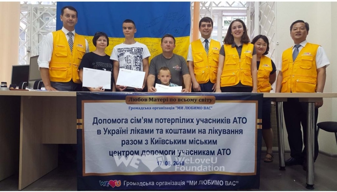 우크라이나 키예프시 대테러 지원센터에서 참전자 가정 3곳에 의료비를 전달하는 위러브유의 기증식이 열렸고요~