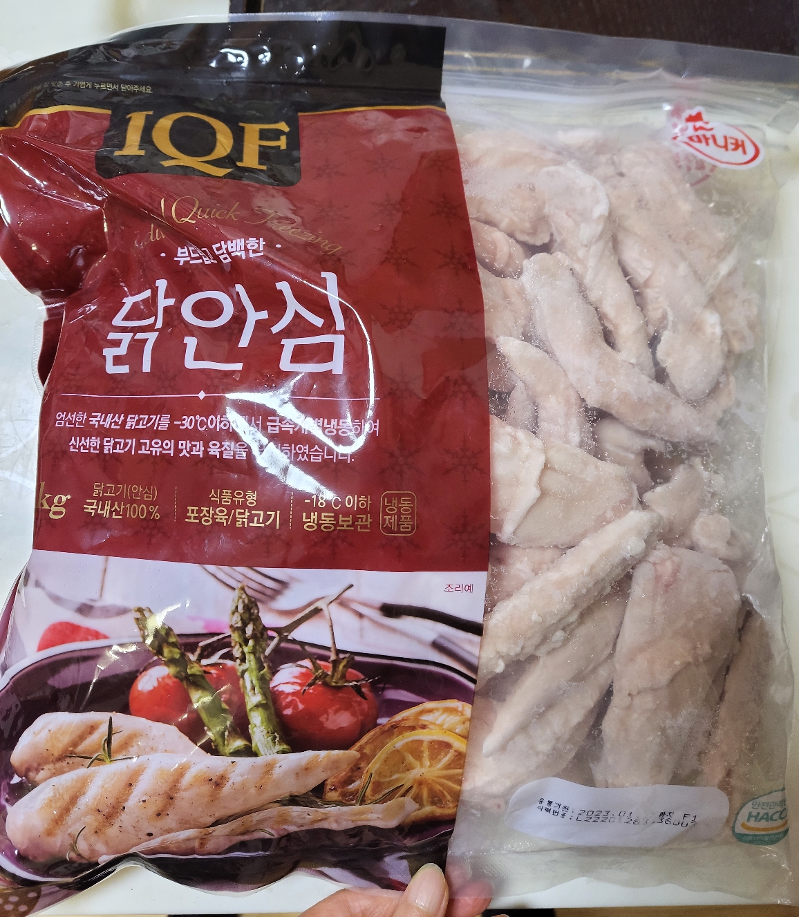 닭가슴살 살까 하다 닭안심이 좀 부드러운 편이라 마니커 IQF 냉동 닭안심 2kg 구매.