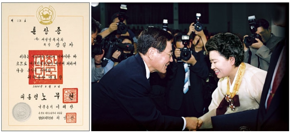장길자 명예회장님 수상내역중 훈장 수훈 소개합니다.